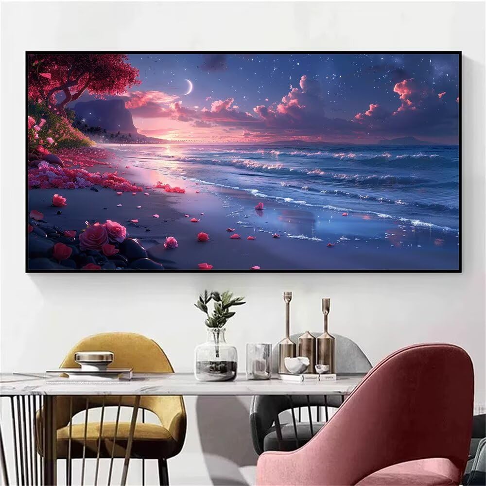 Dipingere Con i Numeri Bambini luna, vista notturna Quadri da Dipingere Numerati, DIY Paint by Numbers Kit di Pittura su Tela per Principianti, Numeri per con Vernici, Home Room Decor 70x140cm H-495
