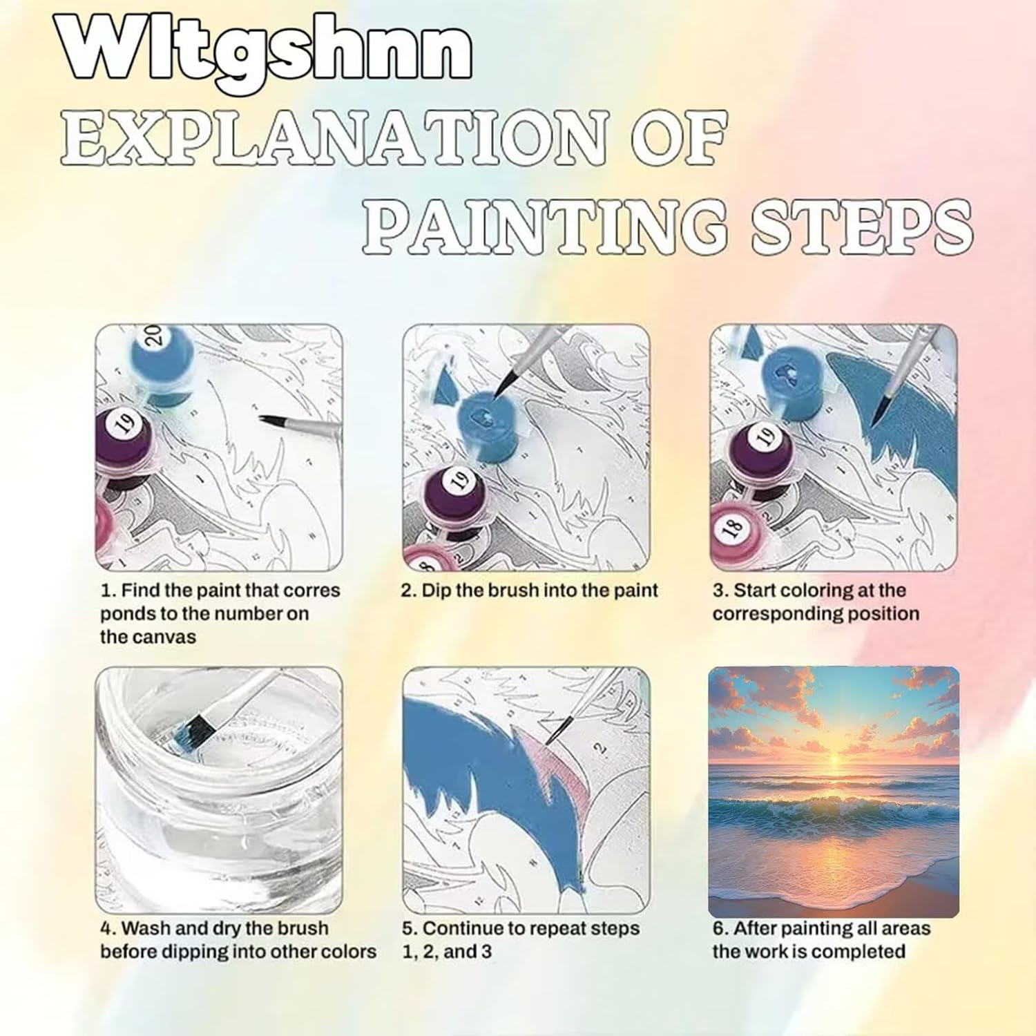 Presentiamo il kit Painting By Numbers per adulti, un modo emozionante e divertente per esplorare il mondo della pittura. Questo kit è perfetto per persone di tutte le età e livelli di abilità che vogliono creare il proprio capolavoro senza il fastidio di mescolare i colori. Con le sue istruzioni facili da seguire, questo kit di vernice per numeri è il modo perfetto per iniziare a dipingere. Passi di disegno: 1. Trova il numero di vernice corrispondente sulla tela 2. Coprire l'area del blocco di colore corrispondente con la vernice 3. Dopo aver finito la pittura di un'area, lavare la penna 4. Dopo aver lavato la penna, asciugare, e poi dipingere un altro colore Presta attenzione a: 1. A causa degli effetti di illuminazione e degli angoli di tiro, c'è differenza di colore nel prodotto, si prega di capire. 2. A causa della misurazione manuale, c'è una tolleranza nella dimensione del prodotto. 3.In caso di compilare il colore sbagliato, è possibile aspettare che la vernice si asciughi e copre la parte sbagliata con il colore corretto sulla superficie. Una volta finita la vernice, si dovrebbe mettere il coperchio sulla vernice per evitare il deterioramento