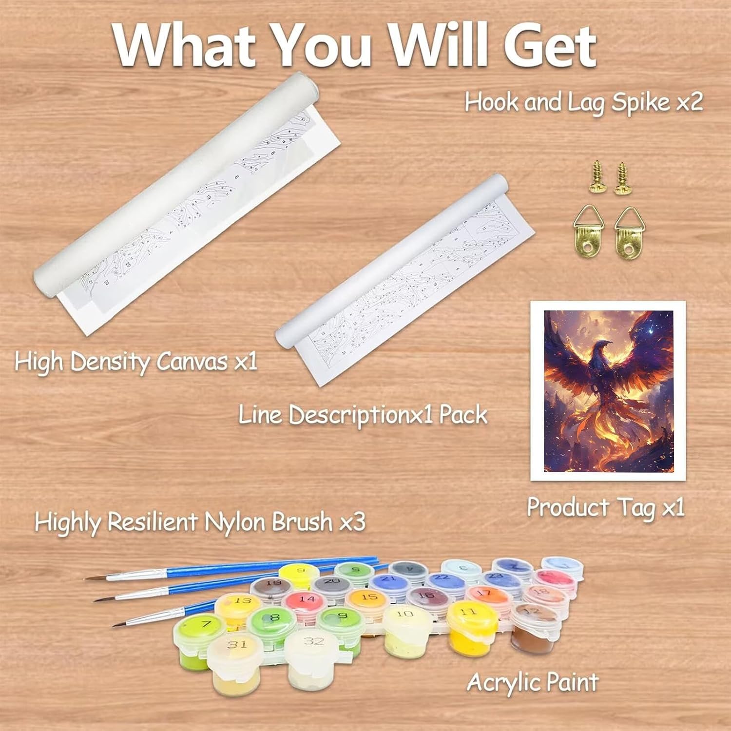 【DIPINGERE CON I NUMERI】:Include una tela (con frame), 3 pennelli da pittura, 1 set di colori di pigmento acrilico e un campione di immagine. Siamo pronti per tutto, aspettando solo che tu dipingi la pittura su tela. 【MATERIALI DI ALTA QUALITÀ】:Realizzato con vernici acriliche di alta qualità e resistenti alla sbiadida e tela spessa e strutturata, questo kit garantisce colori vibranti e opere d'arte di lunga durata. Materiali Superiore lo rendono sicuro per bambini e adulti. La tela in cotone puro, ha buon assorbimento d'acqua e capacità di respirazione, facile da conservare per un lungo periodo di tempo. 【FACILE DA DIPINGERE】:Design senza stress per tutte le età: grandi zone numerate, vernici ad asciugatura rapida e una tela leggera che rimane piatta durante il lavoro. Include istruzioni dettagliate passo dopo passo con aiuti visivi per un progresso semplice. 【REGALI PERFETTI】:Un regalo pensato per compleanni, vacanze o vari giorni di commemorazione. Viene elegantemente scatolato con un design pronto per regali. Ideale per gli amanti dell'arte, gli appassionati di fai da te o chiunque cerchi relax. I pezzi finiti possono essere incorniciati per splendidi arredi domestici! 【SERVIZIO POST-VENDITA】:Godetevi un supporto senza preoccupazioni con il nostro team di assistenza clienti dedicato. Se incontri problemi con il tuo kit, sia che mancano pezzi o preoccupazioni di qualità, contattaci, risolveremo attivamente per te. La tua soddisfazione è la nostra priorità!