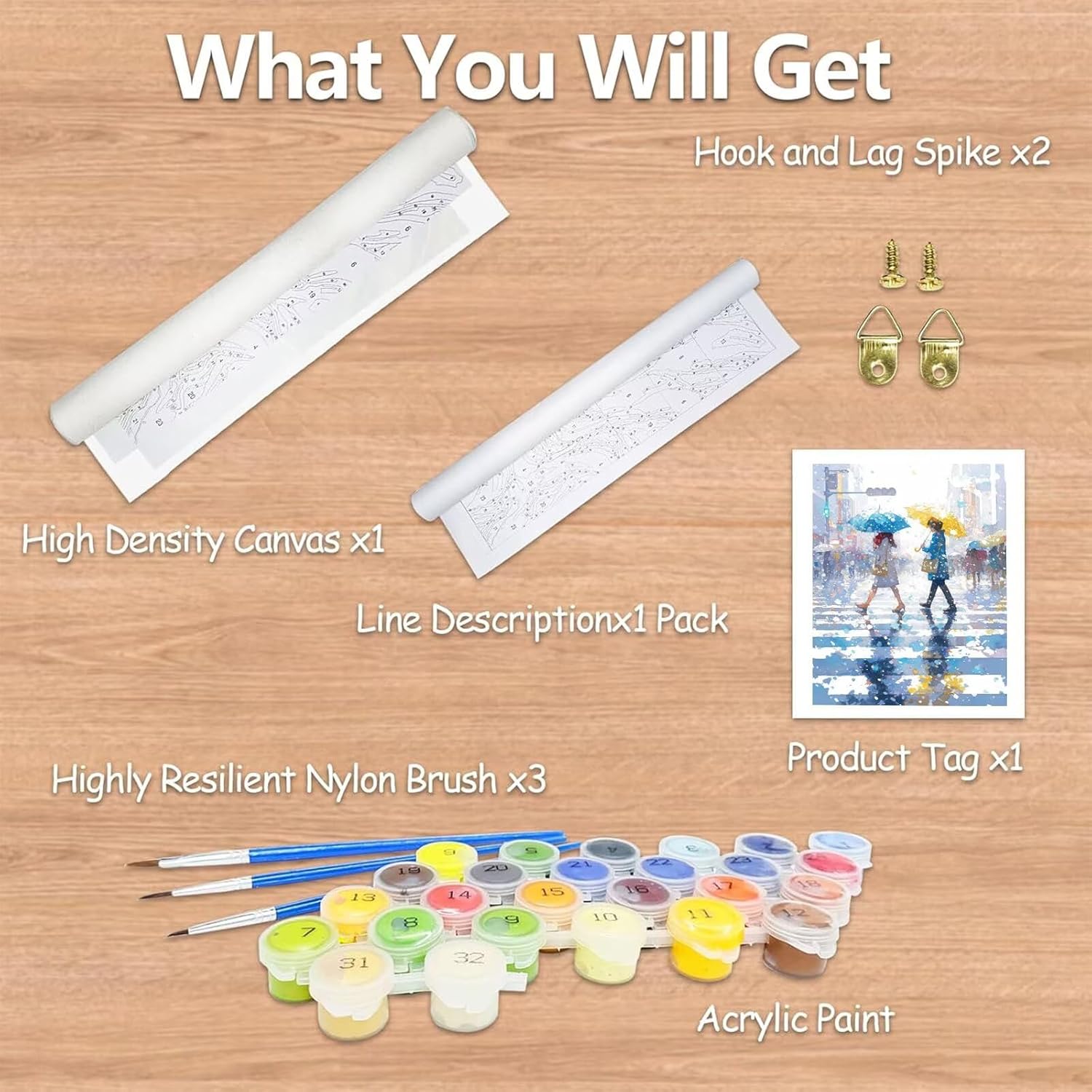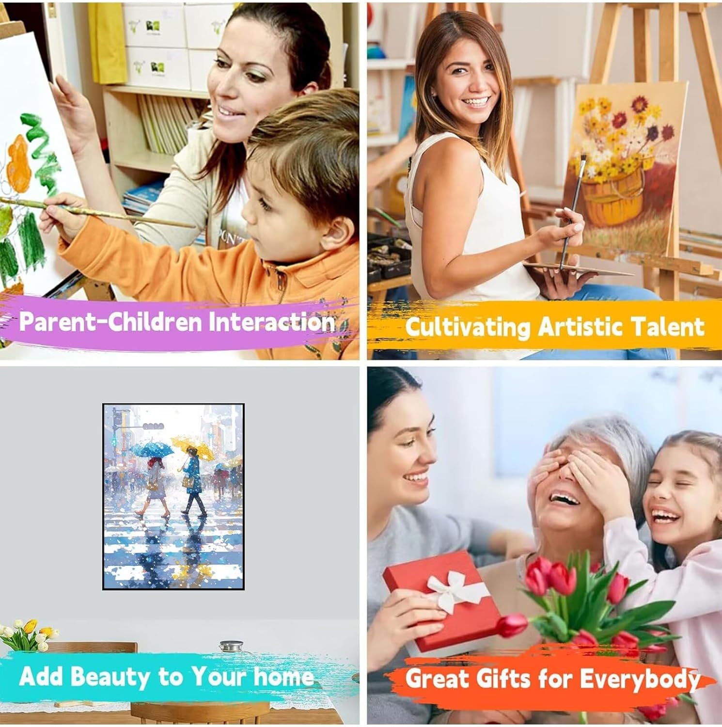 【DIPINGERE CON I NUMERI】:Include una tela (con frame), 3 pennelli da pittura, 1 set di colori di pigmento acrilico e un campione di immagine. Siamo pronti per tutto, aspettando solo che tu dipingi la pittura su tela. 【MATERIALI DI ALTA QUALITÀ】:Realizzato con vernici acriliche di alta qualità e resistenti alla sbiadida e tela spessa e strutturata, questo kit garantisce colori vibranti e opere d'arte di lunga durata. Materiali Superiore lo rendono sicuro per bambini e adulti. La tela in cotone puro, ha buon assorbimento d'acqua e capacità di respirazione, facile da conservare per un lungo periodo di tempo. 【FACILE DA DIPINGERE】:Design senza stress per tutte le età: grandi zone numerate, vernici ad asciugatura rapida e una tela leggera che rimane piatta durante il lavoro. Include istruzioni dettagliate passo dopo passo con aiuti visivi per un progresso semplice. 【REGALI PERFETTI】:Un regalo pensato per compleanni, vacanze o vari giorni di commemorazione. Viene elegantemente scatolato con un design pronto per regali. Ideale per gli amanti dell'arte, gli appassionati di fai da te o chiunque cerchi relax. I pezzi finiti possono essere incorniciati per splendidi arredi domestici! 【SERVIZIO POST-VENDITA】:Godetevi un supporto senza preoccupazioni con il nostro team di assistenza clienti dedicato. Se incontri problemi con il tuo kit, sia che mancano pezzi o preoccupazioni di qualità, contattaci, risolveremo attivamente per te. La tua soddisfazione è la nostra priorità!