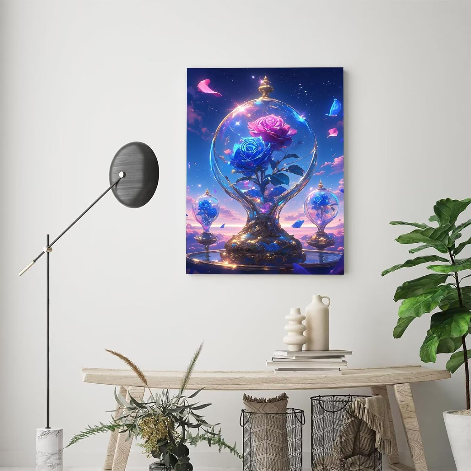 Dipingere Con i Numeri bambini Rose, Dipingere Con i Numeri Adulti, 70x100cm, Fai Da Te creativo adulti Pigmento Acrilico Pittura Olio, ideale Autunno Signora Regali, Con Cornice Disegno Vetro A-548