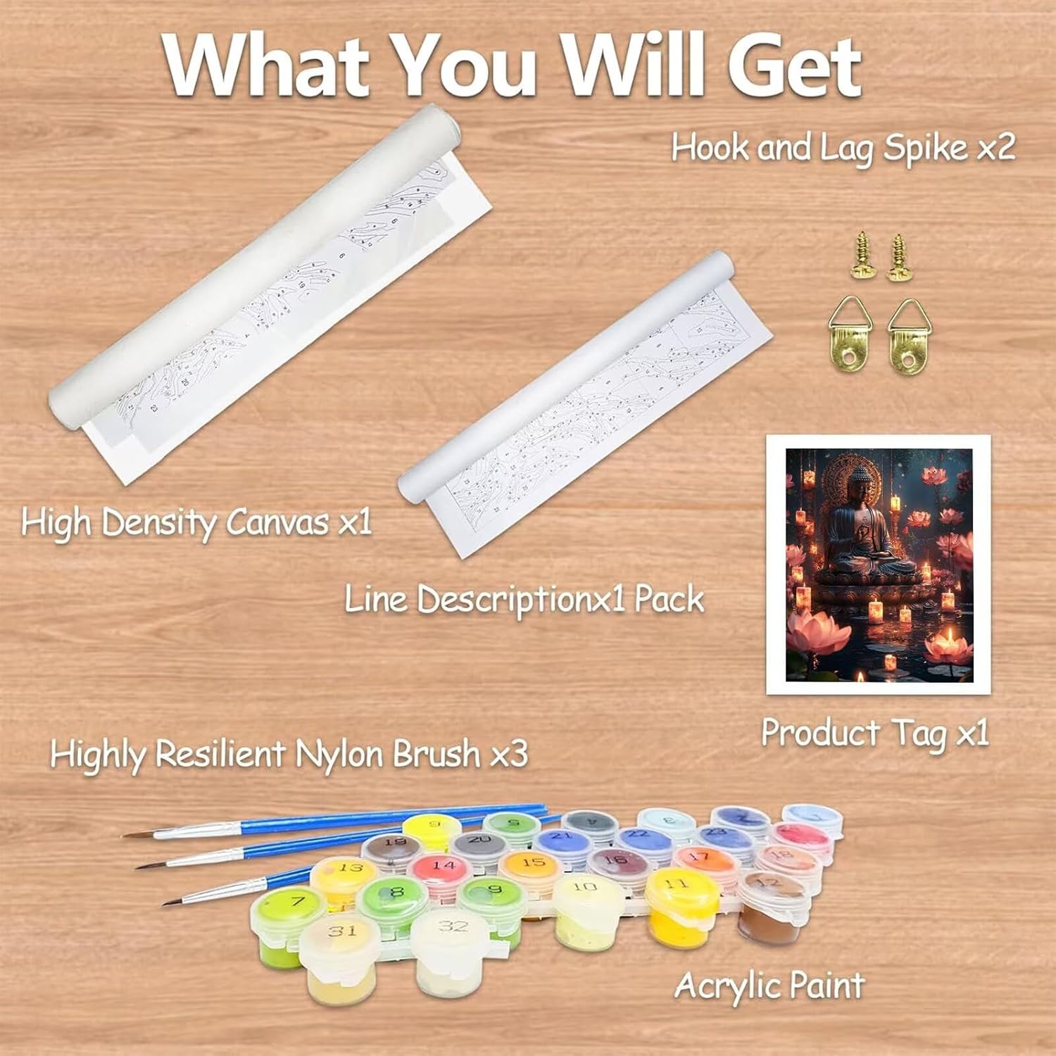 【DIPINGERE CON I NUMERI】:Include una tela (con frame), 3 pennelli da pittura, 1 set di colori di pigmento acrilico e un campione di immagine. Siamo pronti per tutto, aspettando solo che tu dipingi la pittura su tela. 【MATERIALI DI ALTA QUALITÀ】:Realizzato con vernici acriliche di alta qualità e resistenti alla sbiadida e tela spessa e strutturata, questo kit garantisce colori vibranti e opere d'arte di lunga durata. Materiali Superiore lo rendono sicuro per bambini e adulti. La tela in cotone puro, ha buon assorbimento d'acqua e capacità di respirazione, facile da conservare per un lungo periodo di tempo. 【FACILE DA DIPINGERE】:Design senza stress per tutte le età: grandi zone numerate, vernici ad asciugatura rapida e una tela leggera che rimane piatta durante il lavoro. Include istruzioni dettagliate passo dopo passo con aiuti visivi per un progresso semplice. 【REGALI PERFETTI】:Un regalo pensato per compleanni, vacanze o vari giorni di commemorazione. Viene elegantemente scatolato con un design pronto per regali. Ideale per gli amanti dell'arte, gli appassionati di fai da te o chiunque cerchi relax. I pezzi finiti possono essere incorniciati per splendidi arredi domestici! 【SERVIZIO POST-VENDITA】:Godetevi un supporto senza preoccupazioni con il nostro team di assistenza clienti dedicato. Se incontri problemi con il tuo kit, sia che mancano pezzi o preoccupazioni di qualità, contattaci, risolveremo attivamente per te. La tua soddisfazione è la nostra priorità!