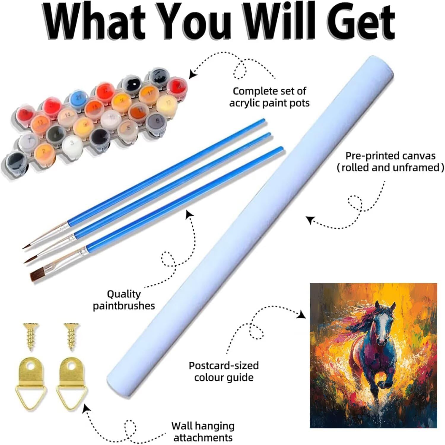 【KIT DIPINGI CON I NUMERI】: Tela colorata prestampata HD x 1, foglio di riferimento x 1, immagine in miniatura x 1, pennelli di diverse dimensioni x 3, vernice acrilica extra al 30%, gancio x 1 set, (senza cornice) 【TELA COLORATA HD】: Dipingere con i numeri adulti utilizza una tela colorata ad alta risoluzione, che è facile da dipingere, l'area del numero è più facile da distinguere, non è facile stancare gli occhi quando si dipinge per lungo tempo. A differenza di altre tele piegate, spediamo in imballaggi arrotolati in modo che la tela non si sgualcisca, di' addio alle pieghe e dai il benvenuto a un'esperienza di pittura senza problemi 【MATERIALI DI ALTA QUALITÀ】: Dipingere con i numeri per adulti utilizza vernice acrilica di alta qualità e sicura, colori brillanti, buona copertura, è facile da colorare e previene lo sbiadimento. 3 pezzi di pennelli professionali di diverse dimensioni, una presa più comoda, una maggiore durata, punte in setole di nylon di alta qualità ideali per la pittura acrilica 【DIY PAINT BY NUMBER】: Dipingere con i numeri bambini è un'attività semplice e divertente, basta seguire i numeri sulla tela con la vernice corrispondente, divertiti a dipingere e crea capolavori sorprendenti 【POST-VENDITA DISTINTO】: Ogni set di pittura con i numeri viene fornito con vernice e strumenti di pittura sufficienti per completare il dipinto. Se durante il processo di produzione mancano parti o domande, ti preghiamo di contattarci, risponderemo al tuo messaggio e risolveremo il problema entro 24 ore