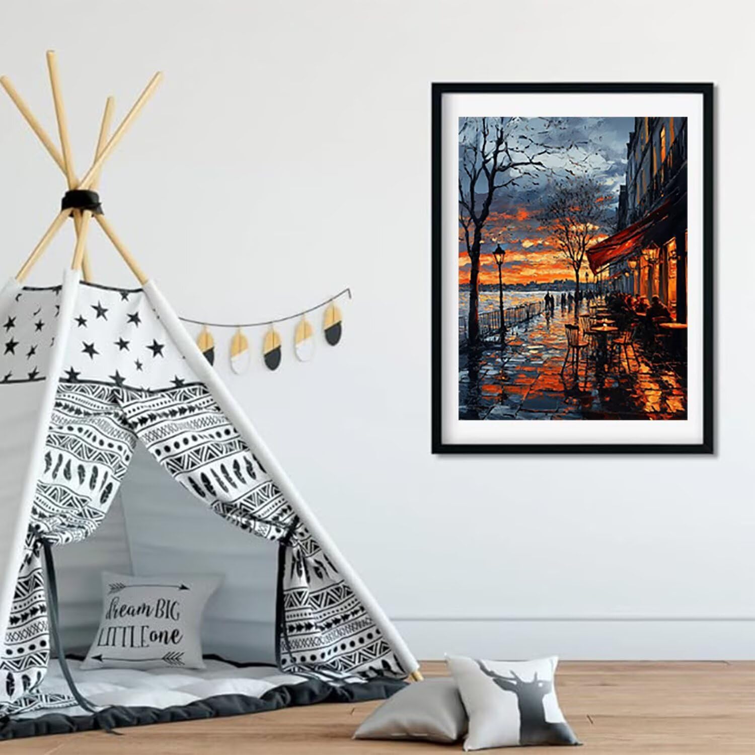 Dipingere con i Numeri Città Vista stradale, DIY Quadri da Dipingere Numerati Bambini, Principianti kit Pittura Artigianato, con Vernici e Pennelli, Hobby Creativi Adulti, Decor Casa 20x30cm T-89