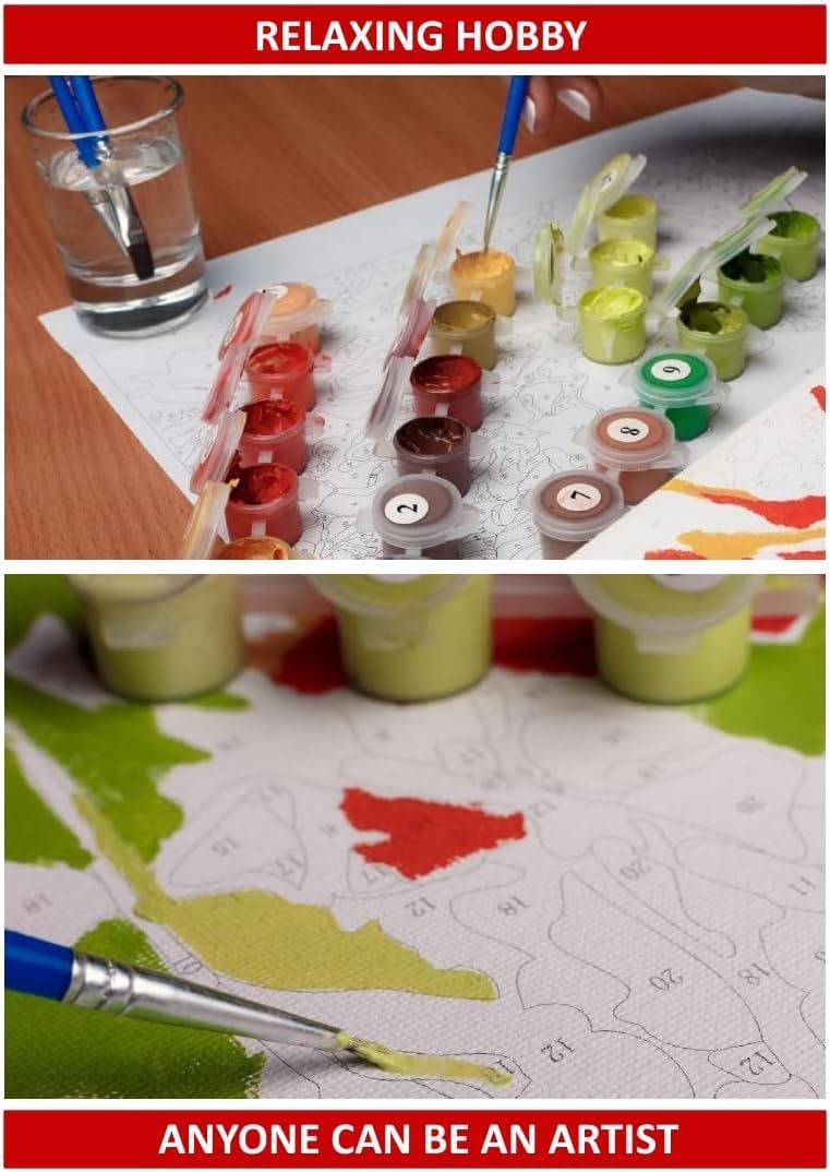 Kit di pittura con i numeri: include una scatola regalo con 1 tela artistica testurizzata prestampata (senza cornice), 1 set di colori acrilici, di grandi dimensioni con più set di colori acrilici di pennelli, 1 set di pennelli (include 3 pezzi). Caratteristiche del prodotto: Dipingi con i numeri per adulti e bambini, la pittura con i numeri offre un modo divertente per chiunque di essere coinvolto nelle arti, l'obiettivo è divertirsi a dipingere e rilassarsi. Come fare: devi abbinare i numeri per colore, finire uno per uno la vernice e le figure sulla tela per riempire la vernice. crea capolavori Puoi essere un artista unico per Regalo ideale - È perfetto per la decorazione della casa, regalo squisito per Natale, Ringraziamento, compleanno e premi di concorso, Per altre scelte di pittura a olio, cerca "(Dxoaoocc) Dipingi con i numeri" Servizio post-vendita - Siamo certi che apprezzerai davvero questo capolavoro su tela dipinto con i numeri. Dopo aver ricevuto il prodotto, se hai domande su Dipingi con i numeri, contattaci e inviaci un'e-mail su Amazon. Risponderemo al tuo messaggio e risolveremo il.