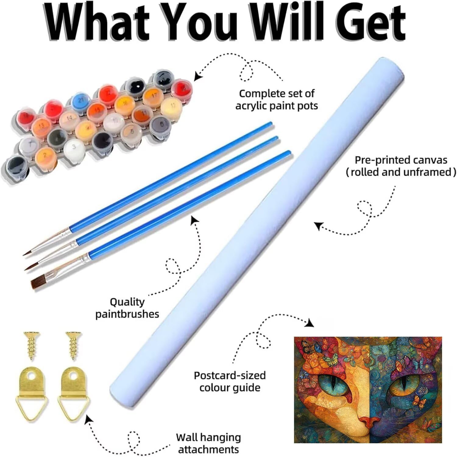 【KIT DIPINGI CON I NUMERI】: Tela colorata prestampata HD x 1, foglio di riferimento x 1, immagine in miniatura x 1, pennelli di diverse dimensioni x 3, vernice acrilica extra al 30%, gancio x 1 set, (senza cornice) 【TELA COLORATA HD】: Dipingere con i numeri adulti utilizza una tela colorata ad alta risoluzione, che è facile da dipingere, l'area del numero è più facile da distinguere, non è facile stancare gli occhi quando si dipinge per lungo tempo. A differenza di altre tele piegate, spediamo in imballaggi arrotolati in modo che la tela non si sgualcisca, di' addio alle pieghe e dai il benvenuto a un'esperienza di pittura senza problemi 【MATERIALI DI ALTA QUALITÀ】: Dipingere con i numeri per adulti utilizza vernice acrilica di alta qualità e sicura, colori brillanti, buona copertura, è facile da colorare e previene lo sbiadimento. 3 pezzi di pennelli professionali di diverse dimensioni, una presa più comoda, una maggiore durata, punte in setole di nylon di alta qualità ideali per la pittura acrilica 【DIY PAINT BY NUMBER】: Dipingere con i numeri bambini è un'attività semplice e divertente, basta seguire i numeri sulla tela con la vernice corrispondente, divertiti a dipingere e crea capolavori sorprendenti 【POST-VENDITA DISTINTO】: Ogni set di pittura con i numeri viene fornito con vernice e strumenti di pittura sufficienti per completare il dipinto. Se durante il processo di produzione mancano parti o domande, ti preghiamo di contattarci, risponderemo al tuo messaggio e risolveremo il problema entro 24 ore
