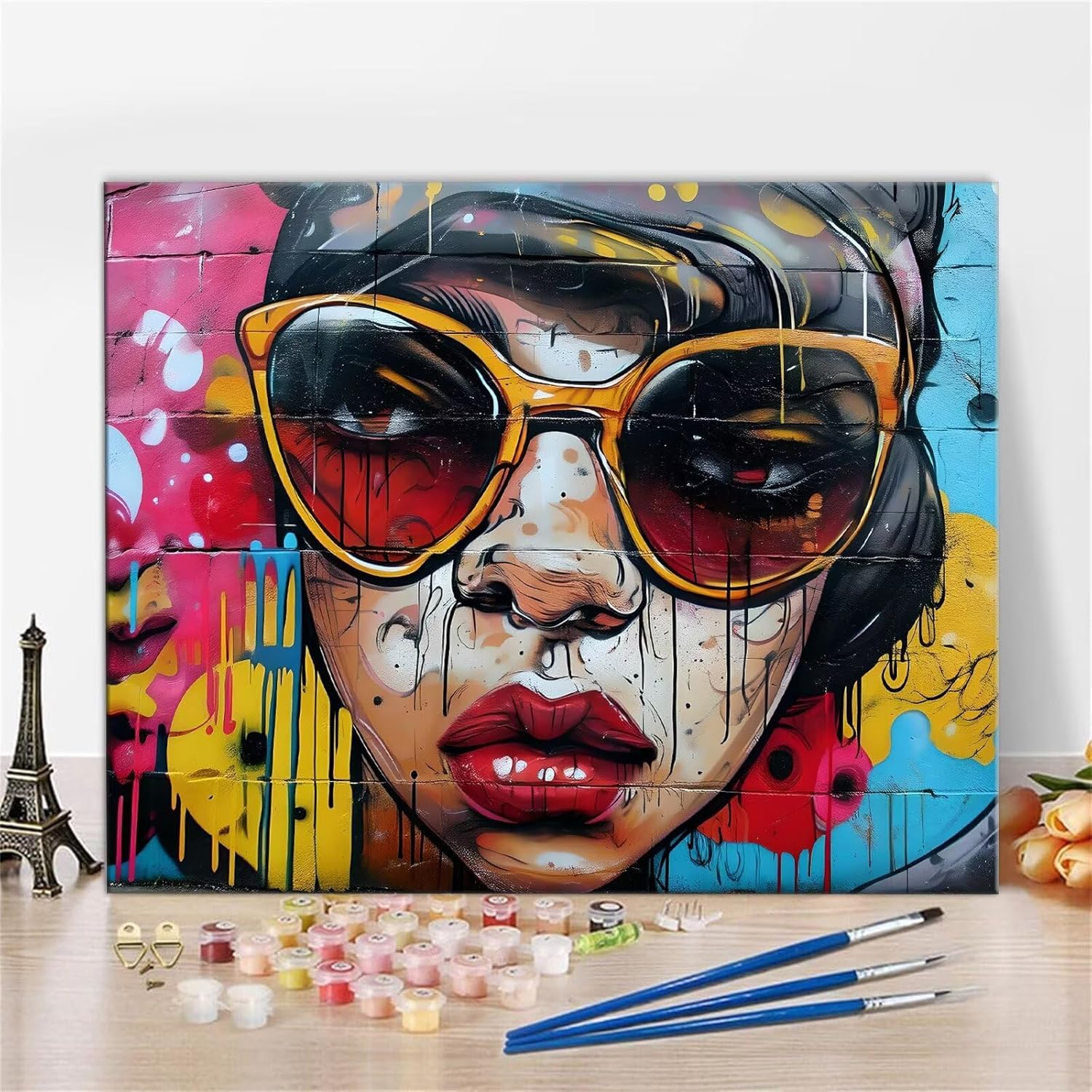 Dipingere con i Numeri Graffiti Dipingi con i numeri per Adulti, DIY Kit di Tele per Pittura a Olio Dipinte a Mano, Occhio Dipingere con i Numeri Bambini per la Decorazione Della Casa 100x70cm P-921