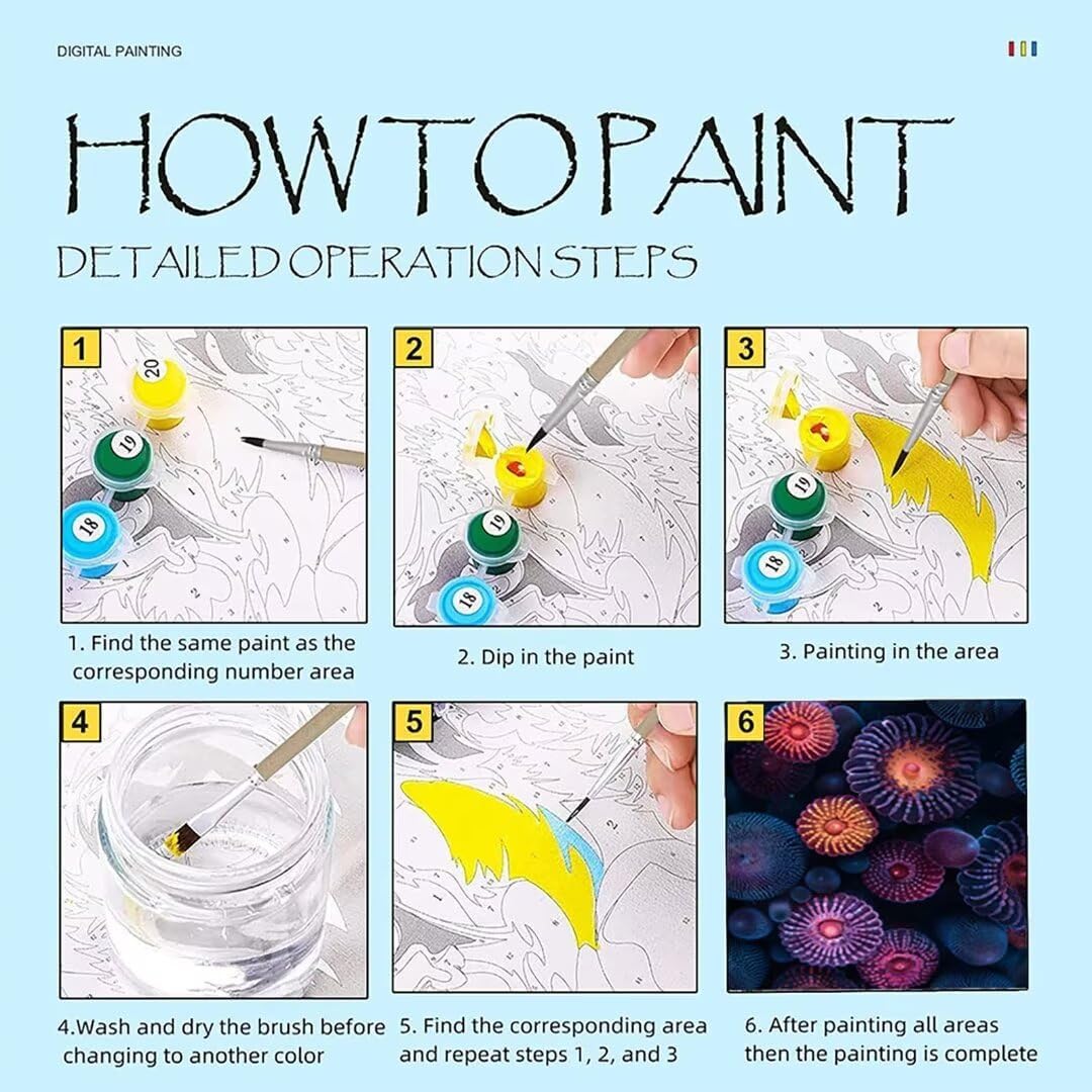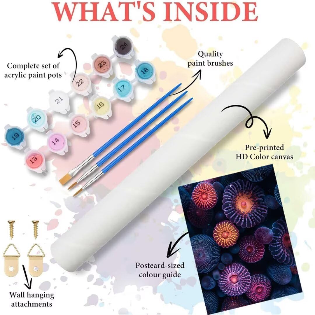 Dipingere con i Numeri, Kit Pittura Bambini, Dipingere con i Numeri Adulti Anemone di mare, Gioco Educativo, Idea Regalo Bambino e Bambina 9+ Anni, 50 x 65 cm Mare Adatto per Decorazioni Murali M-V