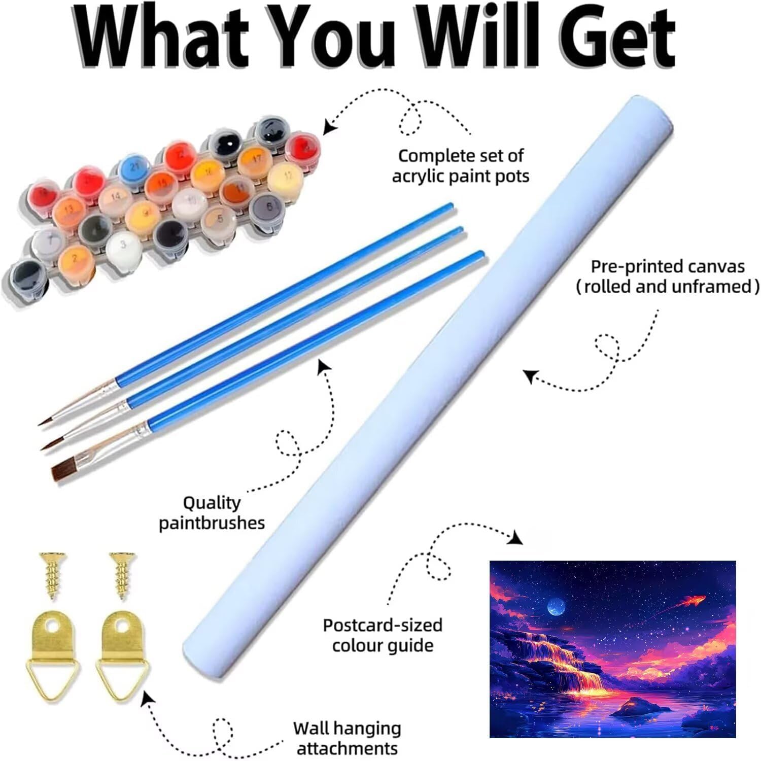 【KIT DIPINGI CON I NUMERI】: Tela colorata prestampata HD x 1, foglio di riferimento x 1, immagine in miniatura x 1, pennelli di diverse dimensioni x 3, vernice acrilica extra al 30%, gancio x 1 set, (senza cornice) 【TELA COLORATA HD】: Dipingere con i numeri adulti utilizza una tela colorata ad alta risoluzione, che è facile da dipingere, l'area del numero è più facile da distinguere, non è facile stancare gli occhi quando si dipinge per lungo tempo. A differenza di altre tele piegate, spediamo in imballaggi arrotolati in modo che la tela non si sgualcisca, di' addio alle pieghe e dai il benvenuto a un'esperienza di pittura senza problemi 【MATERIALI DI ALTA QUALITÀ】: Dipingere con i numeri per adulti utilizza vernice acrilica di alta qualità e sicura, colori brillanti, buona copertura, è facile da colorare e previene lo sbiadimento. 3 pezzi di pennelli professionali di diverse dimensioni, una presa più comoda, una maggiore durata, punte in setole di nylon di alta qualità ideali per la pittura acrilica 【DIY PAINT BY NUMBER】: Dipingere con i numeri bambini è un'attività semplice e divertente, basta seguire i numeri sulla tela con la vernice corrispondente, divertiti a dipingere e crea capolavori sorprendenti 【POST-VENDITA DISTINTO】: Ogni set di pittura con i numeri viene fornito con vernice e strumenti di pittura sufficienti per completare il dipinto. Se durante il processo di produzione mancano parti o domande, ti preghiamo di contattarci, risponderemo al tuo messaggio e risolveremo il problema entro 24 ore