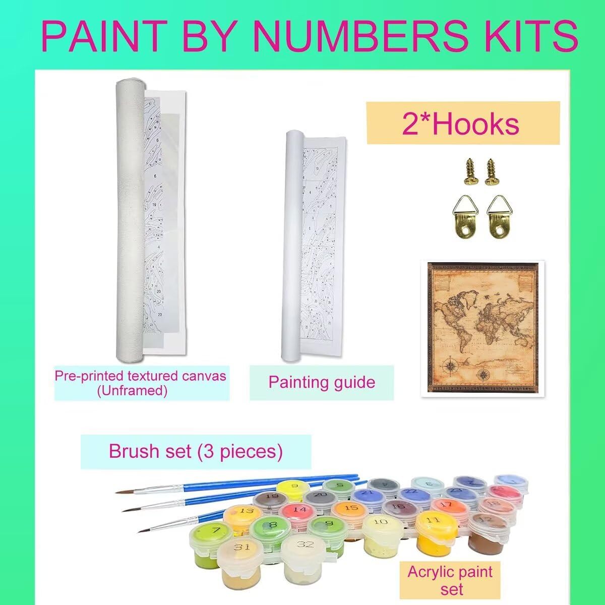 Dipingere con i Numeri Mappa, Paesaggio Dipingere con i Numeri Adulti con Cornice, Kit Pittura Adulti Acrilica Fai da Te Creativo Paint by Numbers per Decorazioni Casa Regalo Donna 35x45cm LiS-1324