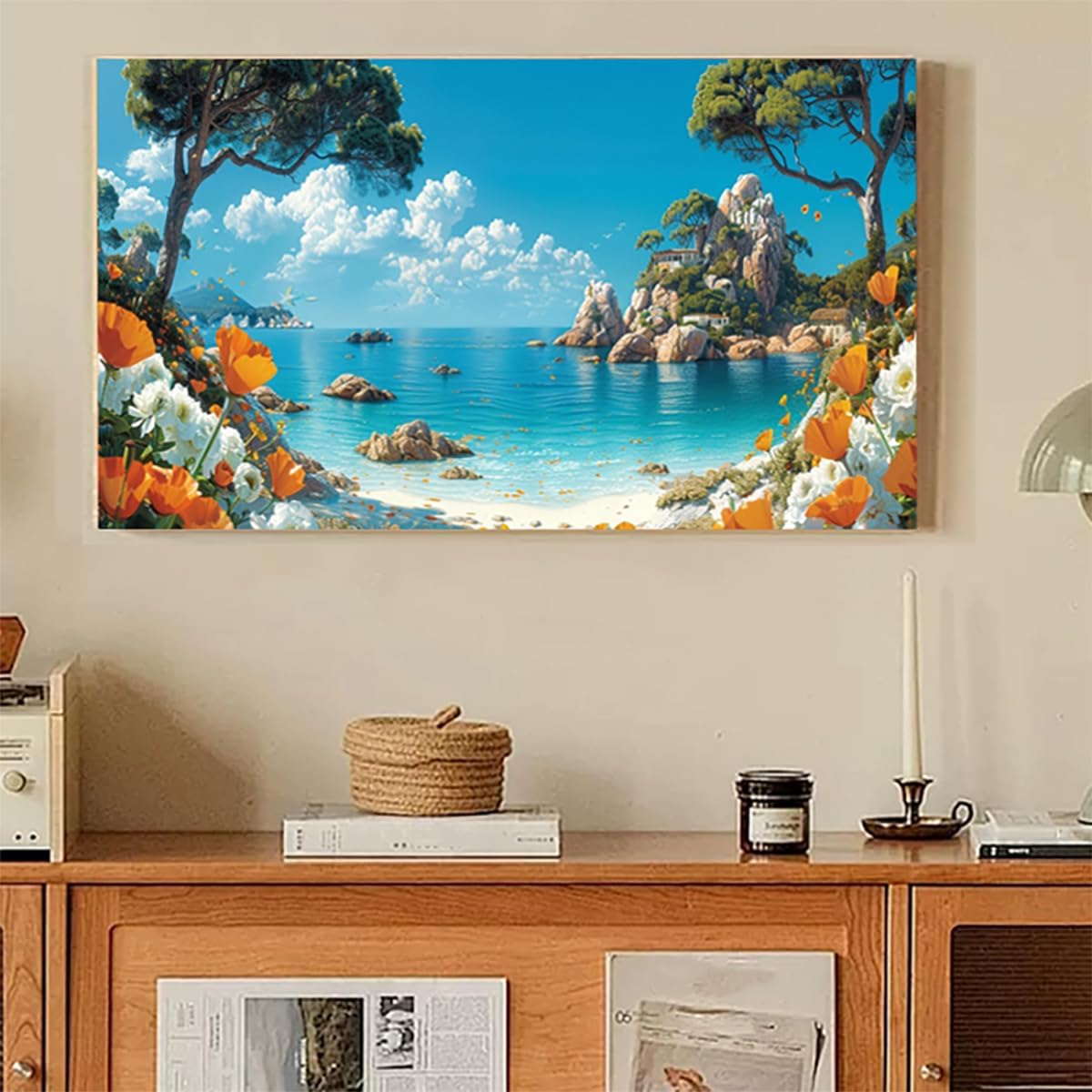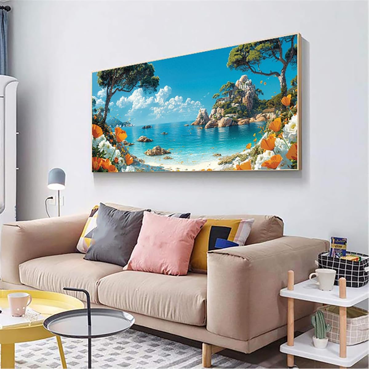 Dipingere con i Numeri Mare Dipingere con i Numeri Adulti Spiaggia Paint by Numbers Adulti con 3 Pennelli e Pigmento Acrilico Dipinta a Mano Tela Colorata Kit di Pittura a Olio Regalos 40x80cm g2-365