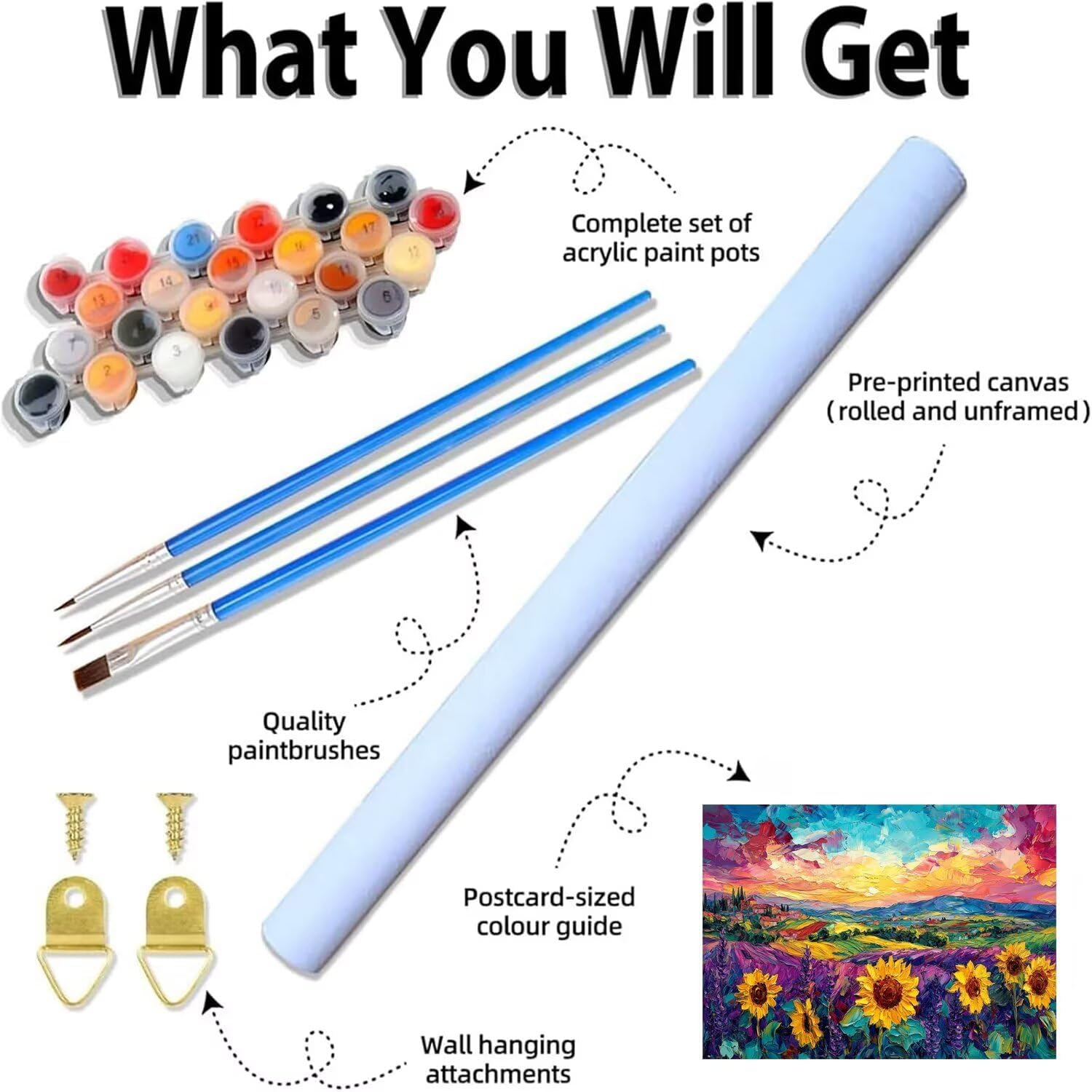 【KIT DIPINGI CON I NUMERI】: Tela colorata prestampata HD x 1, foglio di riferimento x 1, immagine in miniatura x 1, pennelli di diverse dimensioni x 3, vernice acrilica extra al 30%, gancio x 1 set, (senza cornice) 【TELA COLORATA HD】: Dipingere con i numeri adulti utilizza una tela colorata ad alta risoluzione, che è facile da dipingere, l'area del numero è più facile da distinguere, non è facile stancare gli occhi quando si dipinge per lungo tempo 【MATERIALI DI ALTA QUALITÀ】: Dipingere con i numeri per adulti utilizza vernice acrilica di alta qualità e sicura, colori brillanti, buona copertura, è facile da colorare e previene lo sbiadimento. 3 pezzi di pennelli professionali di diverse dimensioni, una presa più comoda, una maggiore durata, punte in setole di nylon di alta qualità ideali per la pittura acrilica 【DIY PAINT BY NUMBER】: Dipingere con i numeri bambini è un'attività semplice e divertente, basta seguire i numeri sulla tela con la vernice corrispondente, divertiti a dipingere e crea capolavori sorprendenti 【POST-VENDITA DISTINTO】: Ogni set di pittura con i numeri viene fornito con vernice e strumenti di pittura sufficienti per completare il dipinto. Se durante il processo di produzione mancano parti o domande, ti preghiamo di contattarci, risponderemo al tuo messaggio e risolveremo il problema entro 24 ore