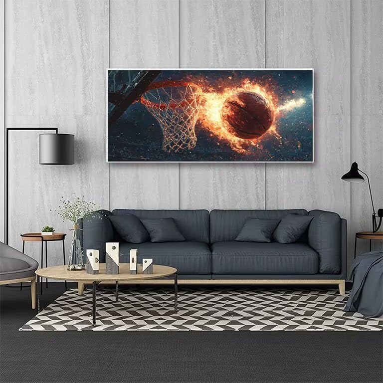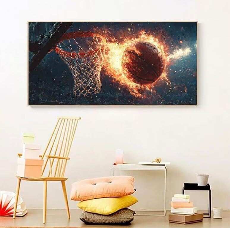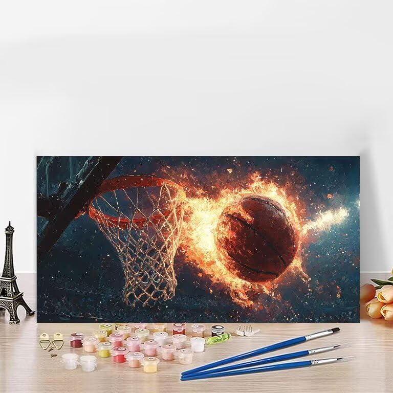 Dipingere Con i Numeri Pallacanestro Dipingere Con i Numeri Bambini Fuoco DIY Painting by Numbers per Principianti con Accessori Tela Antipiega, Regali per le Donne, Decora 80x160cm Con Cornice 7-M255