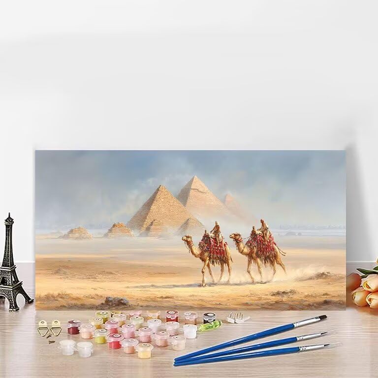 Dipingere Con i Numeri Piramide Dipingere Con i Numeri Bambini Cammello DIY Painting by Numbers per Principianti con Accessori Tela Antipiega, Regali per le Donne, Decora 30x60cm (Con Cornice) F-6T25