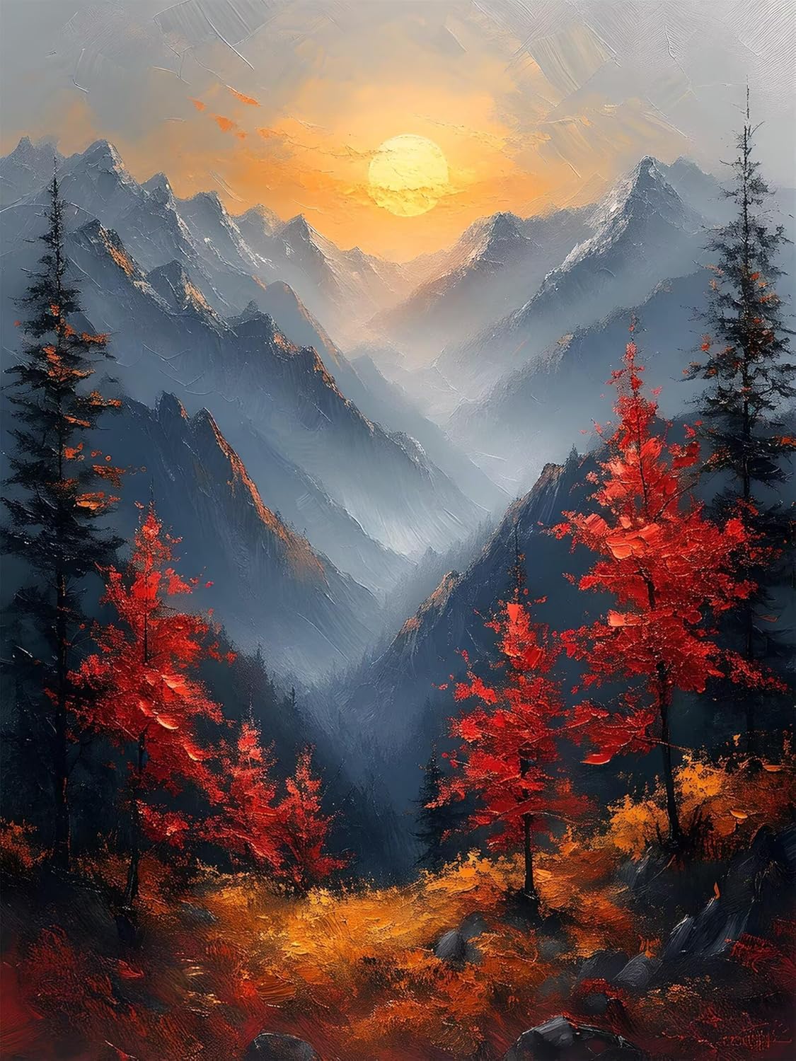 Dipingere con i Numeri Tramonto Dipingi con i Numeri Adulti Montagna Quadri da Dipingere con Numerati, Fai Da Te Creativo Adulti Kit di Pittura su Tela Colorata Prestampata,Regalo Donna 30x40cm Q-1083