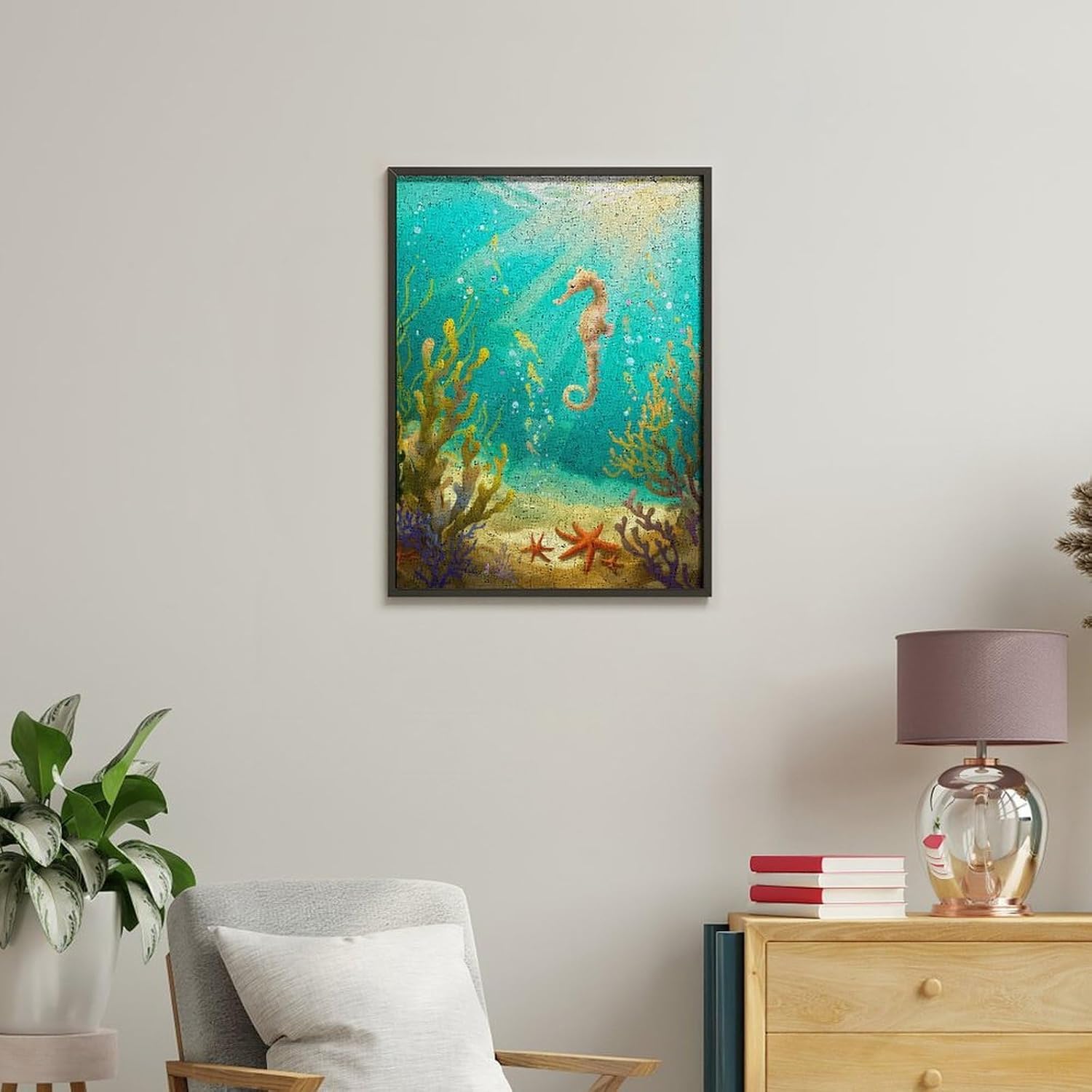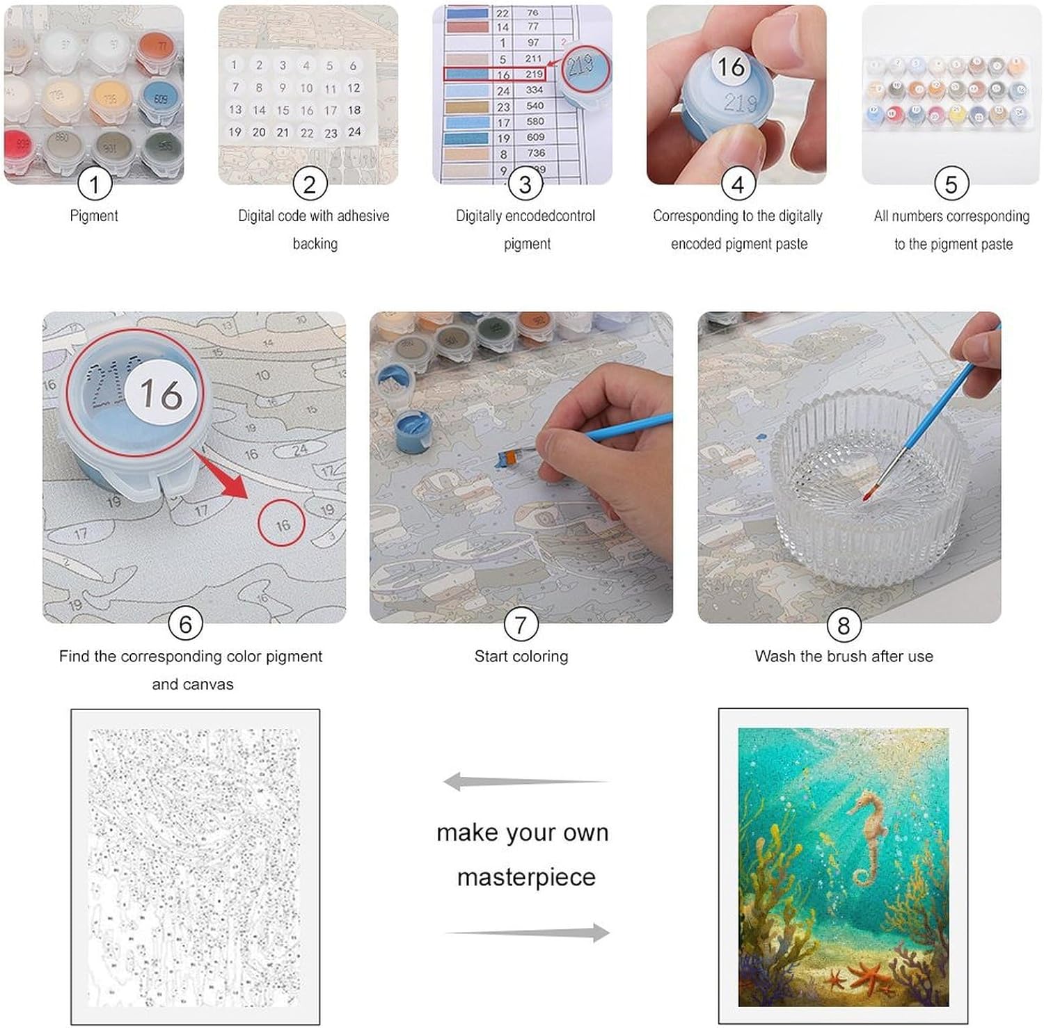 Dipingere con i numeri, un cavalluccio marino che nuota tra coralli colorati e stelle marine Kit per pittura digitale per adulti Crea la tua scena magica forniture artistiche senza cornice 40 x 50 cm