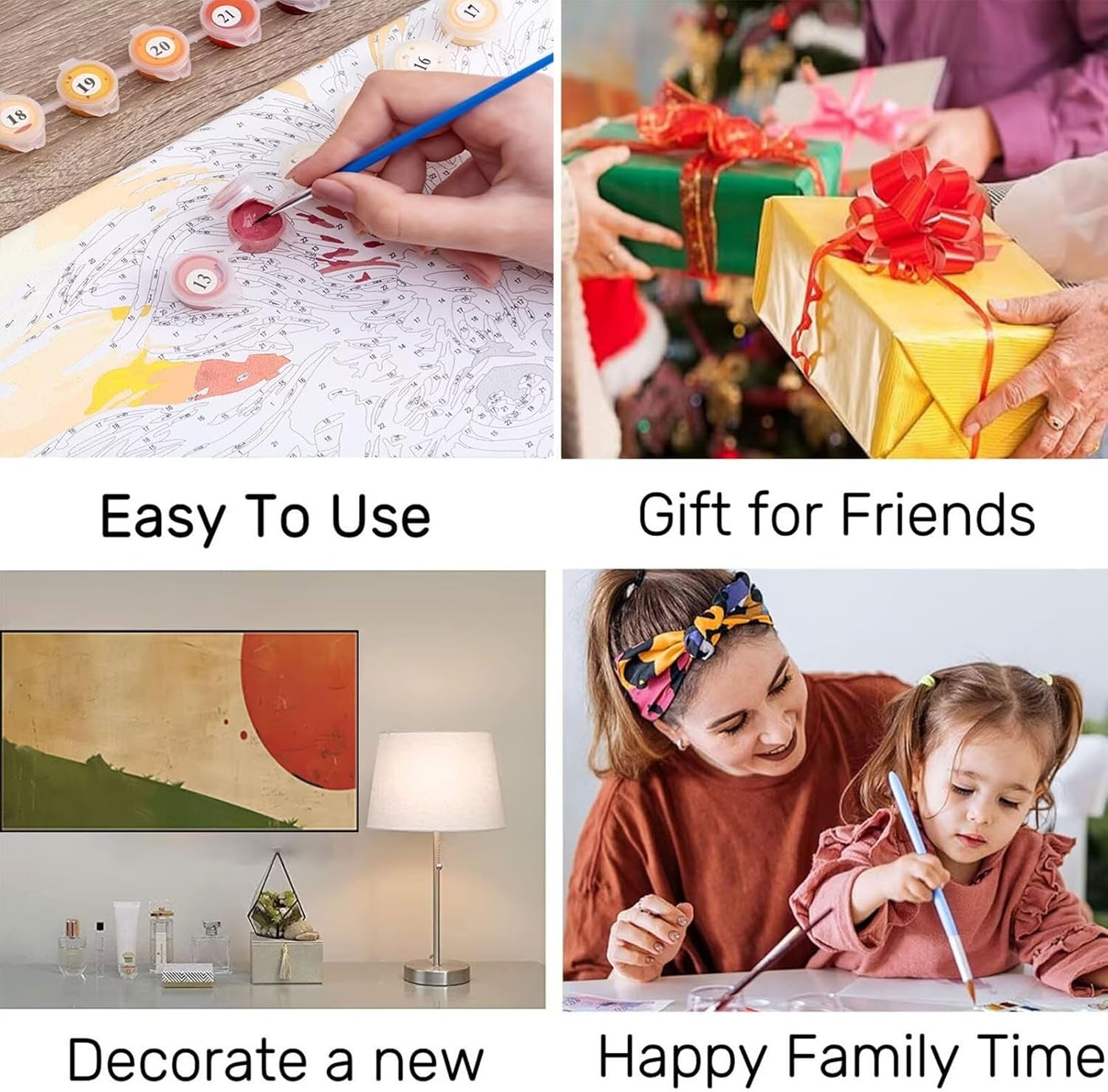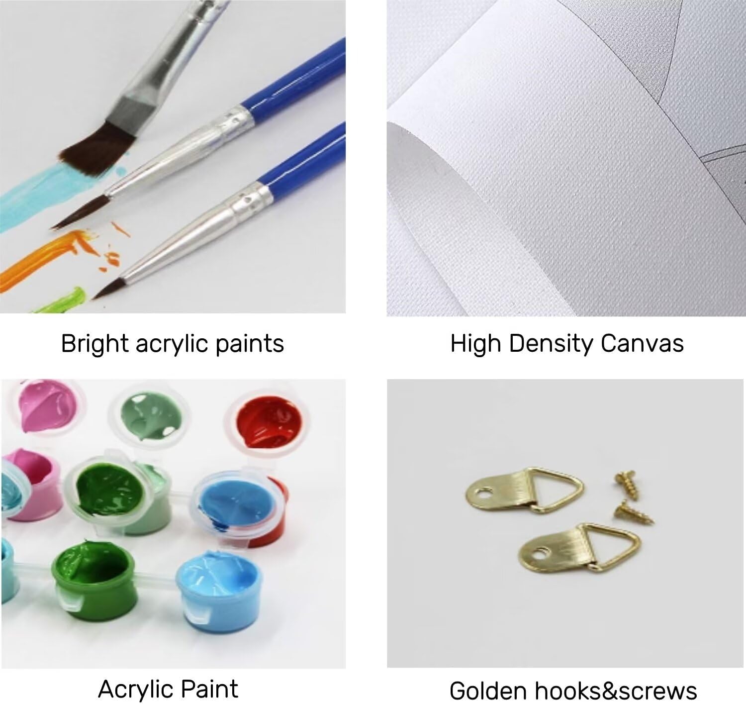 【PITTURA CON I NUMERI】: questo intrigante kit di pittura fatto a mano con i numeri non solo migliora la destrezza manuale e la pazienza, ma migliora anche la percezione del colore e l'abilità estetica favorendo la concentrazione. Inoltre, dipingere con i numeri rappresenta un'attività coinvolgente per i membri della famiglia lontano dai dispositivi elettronici o un piacevole passatempo 【FACILE DA DIPINGERE】: il nostro dipinto a olio su tela è facile da usare. Abbina solo i numeri della vernice e le figure sulla tela per riempire la vernice. E segui le istruzioni, Colora in base al numero del colore e completalo uno per uno 【KIT DIPINGERE CON I NUMER】: questa pittura fai-da-te con i numeri per soggiorni, uffici, negozi, camere da letto e bar. Dipingi con i numeri offre un'alternativa più semplice e sicura al complesso punto croce, pur fornendoti un senso di realizzazione. puoi essere un artista unico per creare capolavori a modo tuo 【COLOUR BY NUMBERS FOR ADULTS】: Package includes pre-printed paint by number canvas, 3 different size professional brushes, acrylic color paints 【CUSTOMER SERVICE】: If you have any questions about our paint by numbers, please feel free to contact us, we will reply and solve your problem as soon as possible, You can also search "GUUOYUAL" paint by numbers to get more options, we have thousands of images for you to choose from, Looking forward to serving you again