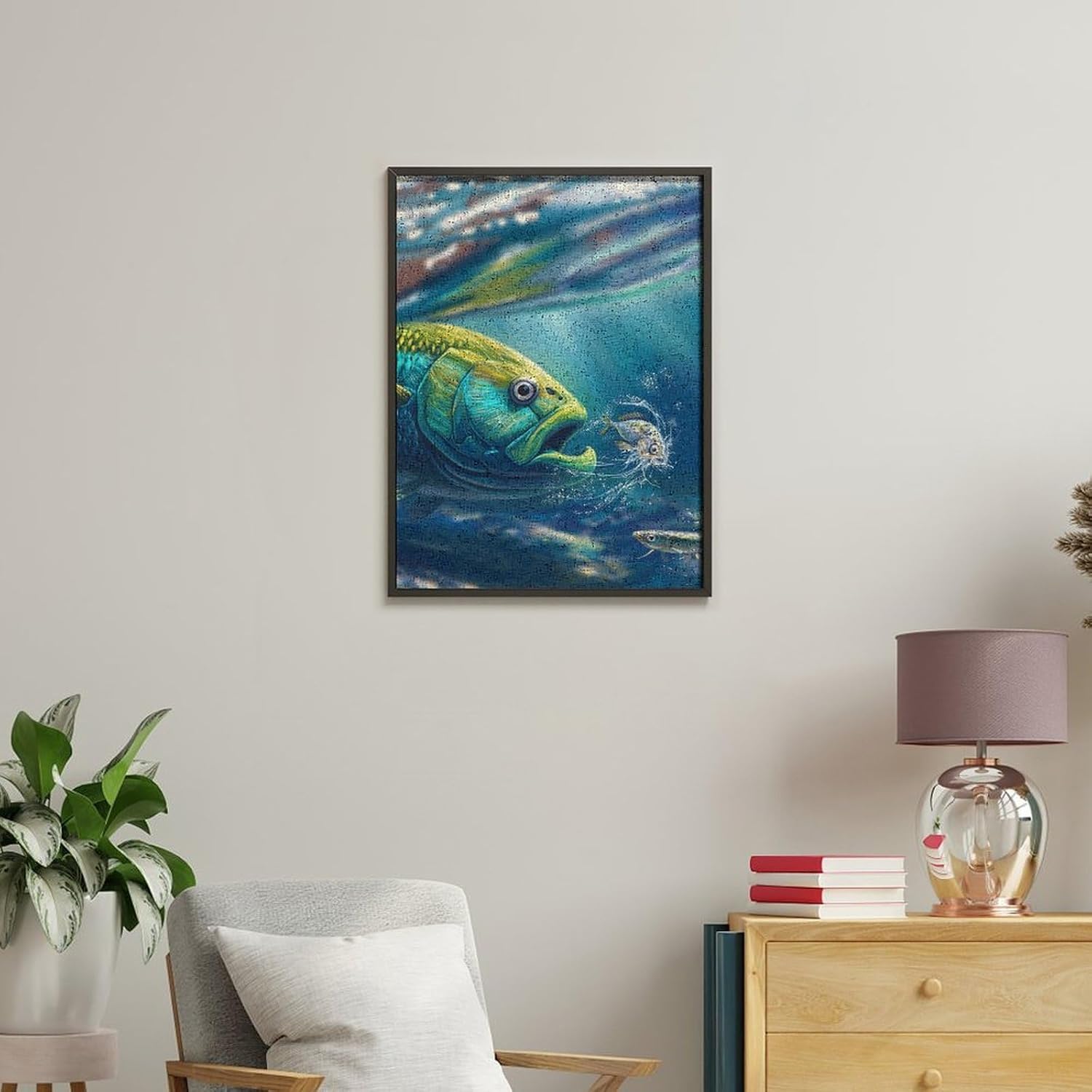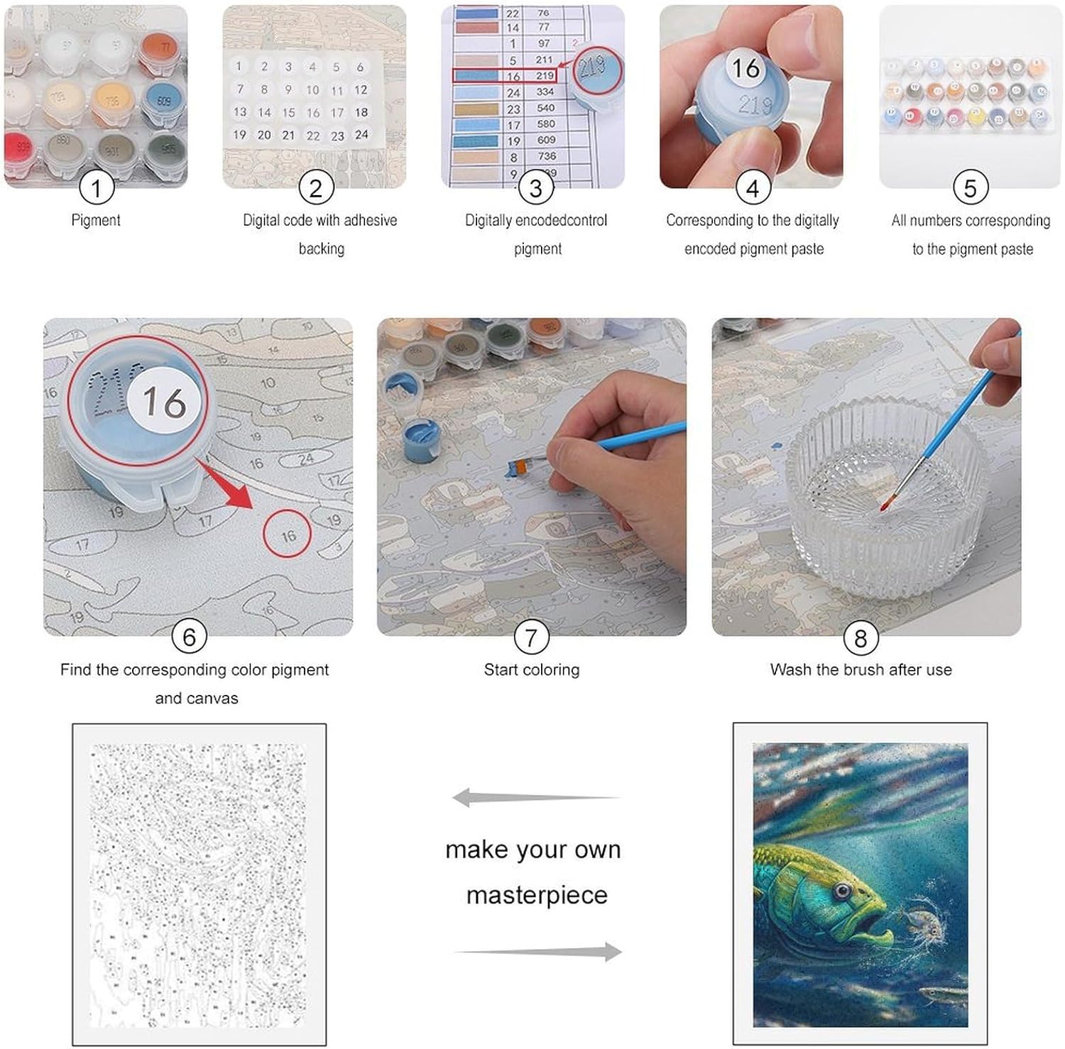 Dipingi con i numeri, un grande pesce sta per mangiare un pesce più piccolo, kit per pittura digitale subacquea per adulti, crea la tua scena magica, forniture artistiche senza cornice, 40 x 50 cm