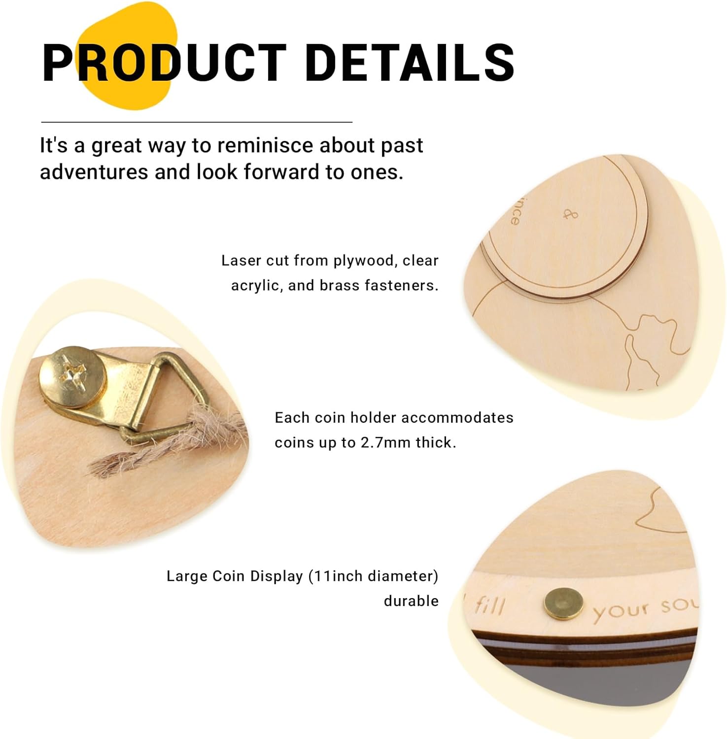 Grande display per monete (diametro di 11 pollici) Ogni portamonete può contenere monete fino a 2,7 mm di spessore. Taglio laser da compensato, acrilico trasparente e elementi di fissaggio in . Un mondo di : ogni racconta una storia e, con questa scatola per monete personalizzata, i tuoi cari potranno con sé i loro di viaggio. È un ottimo modo per ricordare le avventure passate e aspettarne di nuove. I portamonete possono essere smontati (e rimontati) utilizzando un cacciavite a testa piatta.