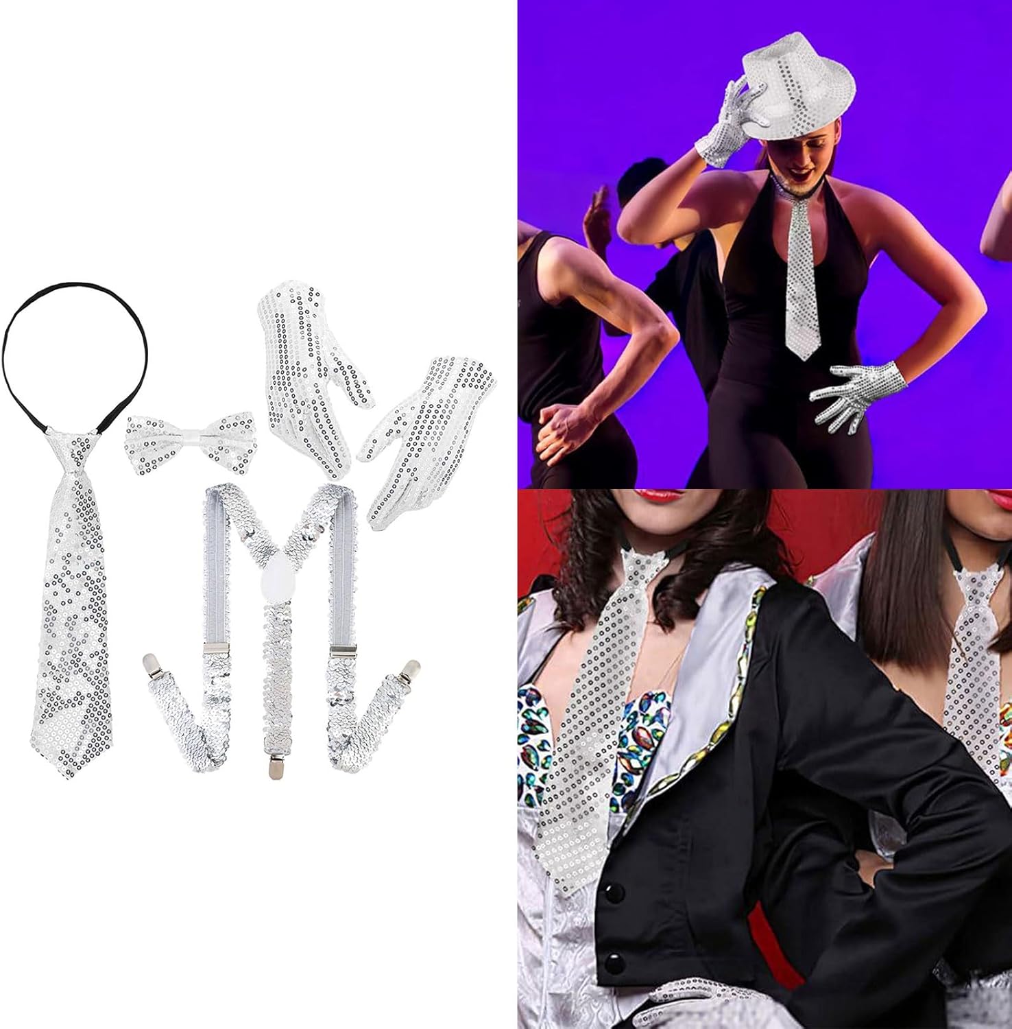 Caratteristiche: Realizzato in fibra di poliestere e paillettes, questo set assicura che ogni movimento catturi l'attenzione, per spettacoli teatrali e feste. Tessuti leggeri, offrono una vestibilità comoda, ideale per un uso prolungato durante le esibizioni. Fornire un rapido ed elegante per gli artisti che necessitano di un rapido cambio di abbigliamento. Resistente all'usura e facile, adatto per un uso frequente da parte di artisti professionisti. Il design neutro si rivolge a uomini e donne, rendendolo adatto a ballerini e artisti di tutte le età e gamme di abilità. Adatto per l'uso in spettacoli teatrali DISCO, feste, festival e altre occasioni, aumentando gli effetti visivi e le atmosfere. Specifiche tecniche: Componente: paillettes in fibra di poliestere Colore: come da immagine. Dimensioni: ca. come da immagine. Quantità: 1 set. Nota: Si prega di considerare un margine di errore di 1-3 cm dovuto alla misurazione Si prega di assicurarsi che non sia un problema prima di effettuare l'ordine. A causa della differenza tra i diversi monitor, l'immagine potrebbe non riflettere il colore reale dell'articolo. La confezione include: 1 cravatta. 1 cravatta. 1 bretelle. 1 paio di guanti