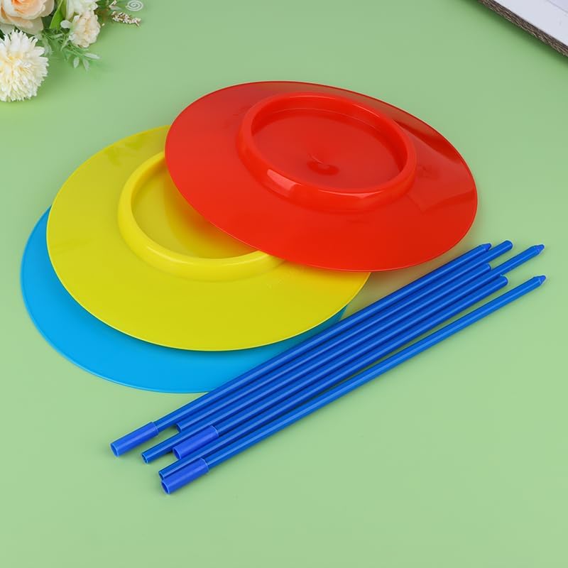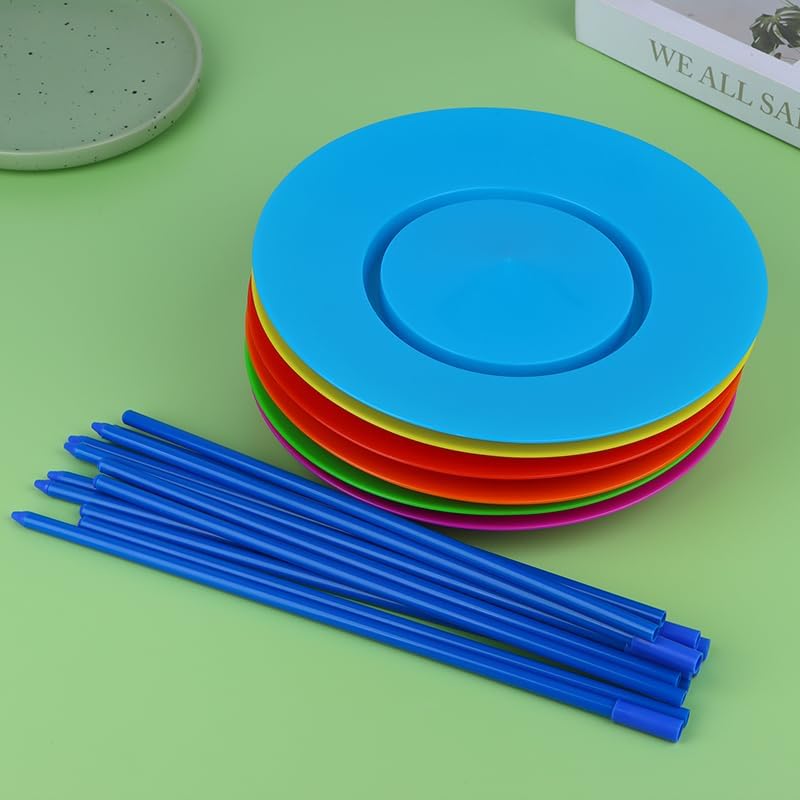 Il pacchetto include 6 pz piatti e 6 pz palo, giradischi diametro 25,7 cm/10,12 pollici Realizzato in materiale plastico ecologico, ed è sicuro, resistente, ingrandito e ispessito. È facile da operare Può essere utilizzato in competizioni competitive di gruppo o esercizi individuali per esercitare la coordinazione occhio-mano e l'equilibrio Può allenare la mano e il cervello, la visione, l'interesse, lo sviluppo intellettuale, i sensi, le emozioni e l'altro addestramento di abilità Coordinazione occhio-mano, è un giocattolo interattivo, adatto a tutti i bambini e adulti dai 6 anni in su.