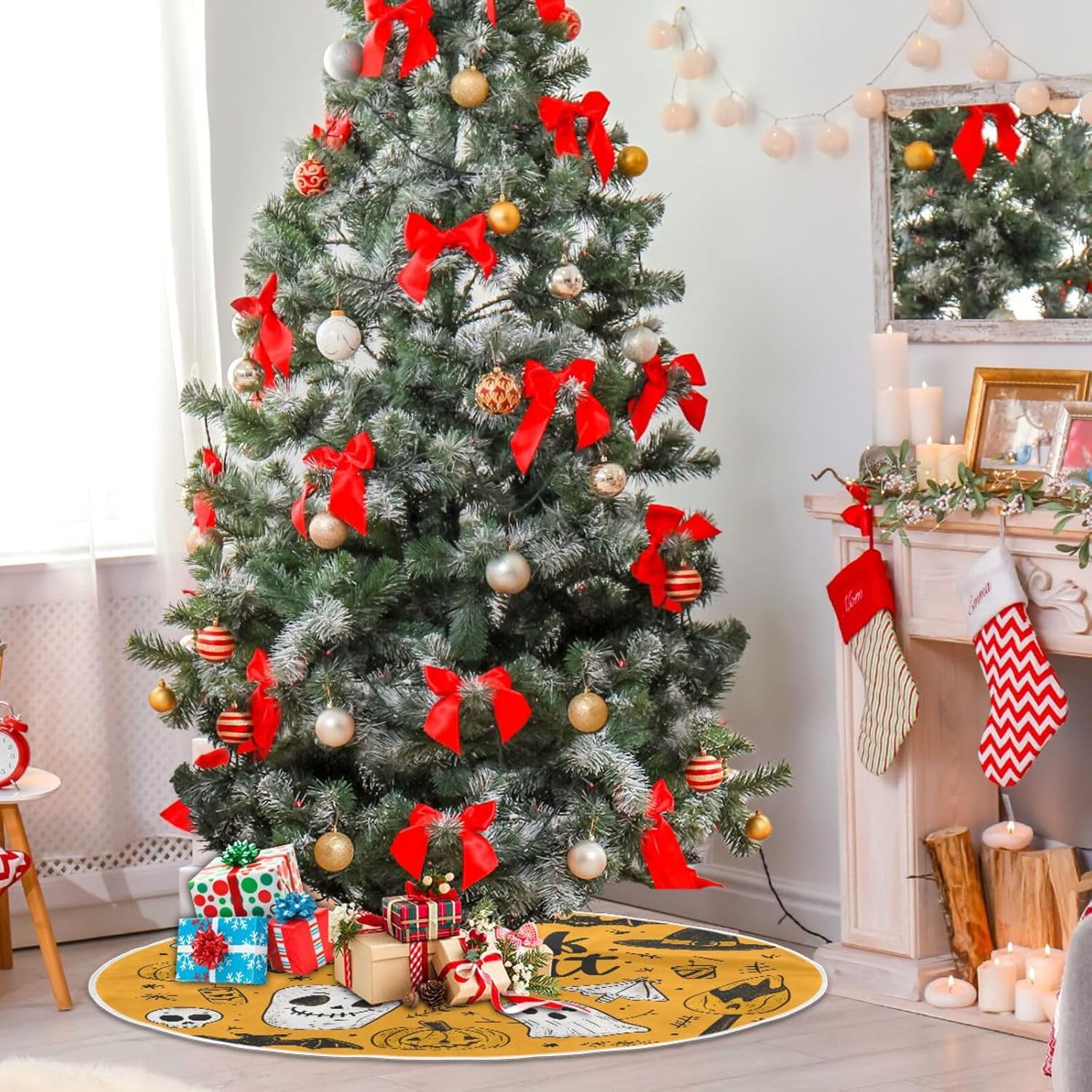 Due misure tra cui scegliere: le gonne grandi dell'albero di Natale sono 120 cm, la gonna piccola dell'albero di Natale è 90 cm. 【Materiale】Le gonne per alberi sottili sono realizzate in tessuto di poliestere, che non fa pieghe e facile da riporre. Queste gonne per albero di Natale sono squisitamente realizzate con bordi delicati che non sono facili da staccare. Ampia applicazione: il colletto rustico dell'albero di Natale è ideale per soggiorno, camera da letto, giardino, bar, hotel, scuola, supermercato, ecc. Come ornamenti speciali, possono aggiungere un'atmosfera festosa, non importa dove li metti. Facile da montare e mantenere: l'ornamento dell'albero di Natale sul retro si chiude con 3 chiusure in velcro per una decorazione facile e veloce dell'albero di Natale senza la necessità di legarlo. Lavare in lavatrice delicatamente, asciugare in asciugatrice a bassa temperatura. Occasione: aggiungi più fascino natalizio al tuo albero di Natale. Gonne per albero di Natale, decorazione perfetta per la casa, l'esterno, l'interno, il soggiorno, la camera da letto, il giardino, il bar, l'hotel, il supermercato o qualsiasi altro luogo.