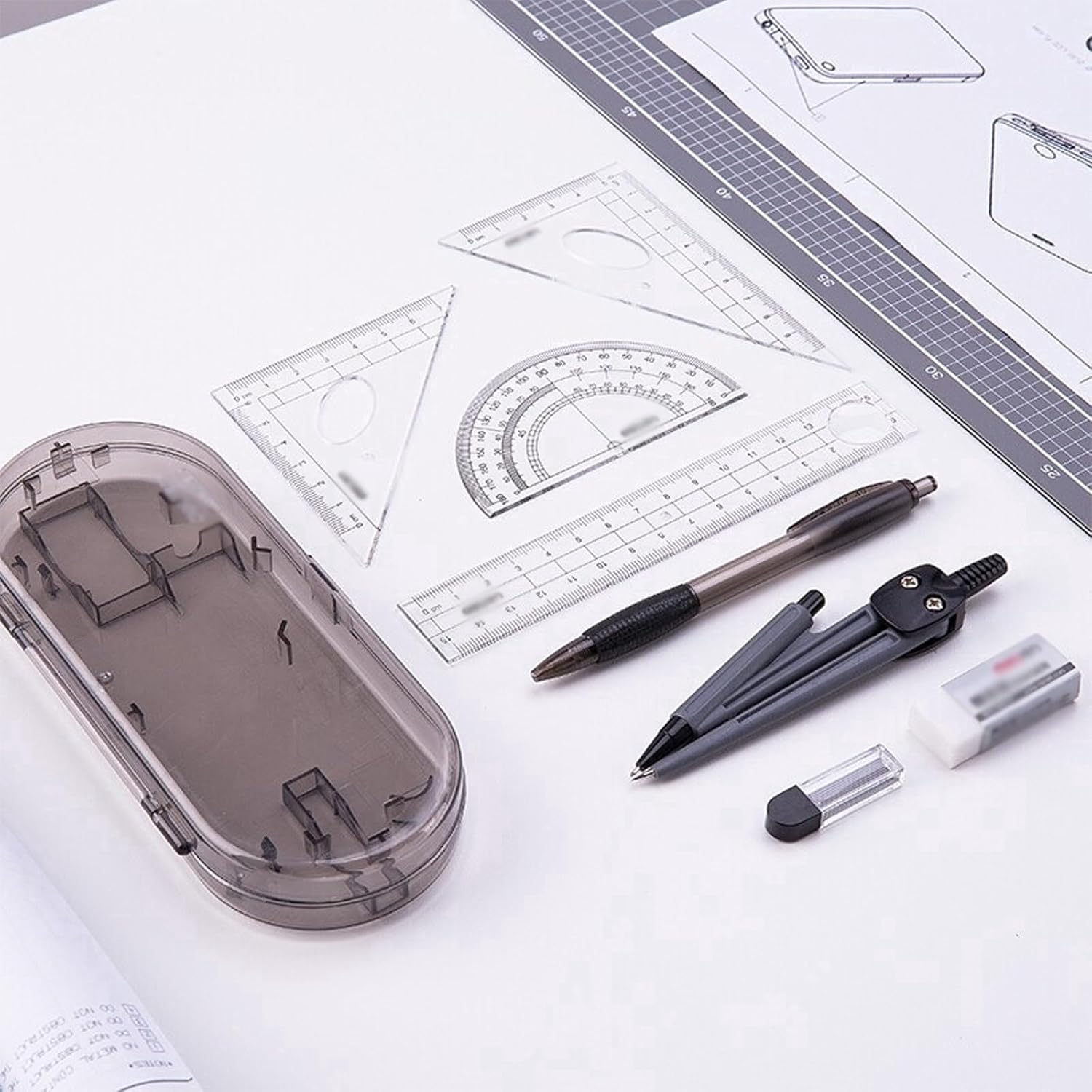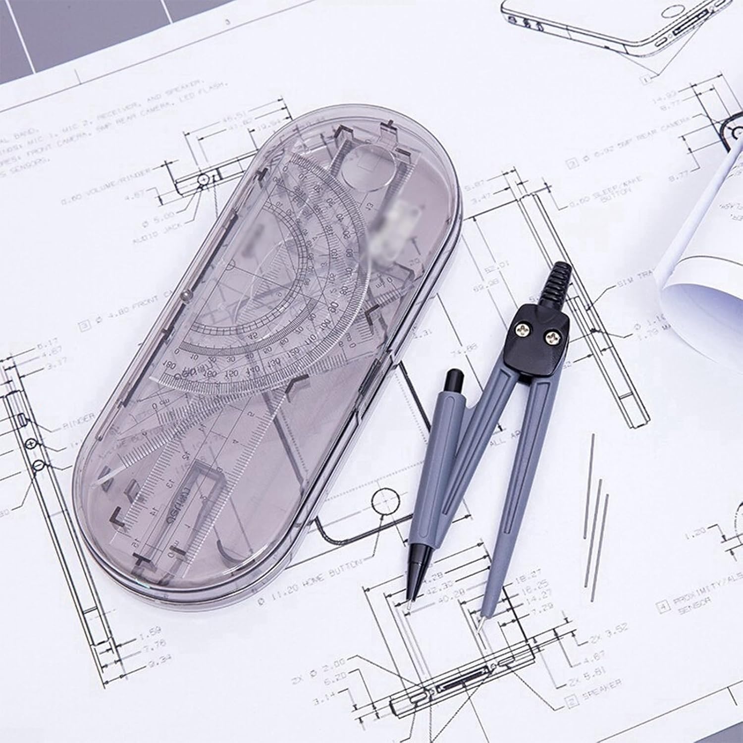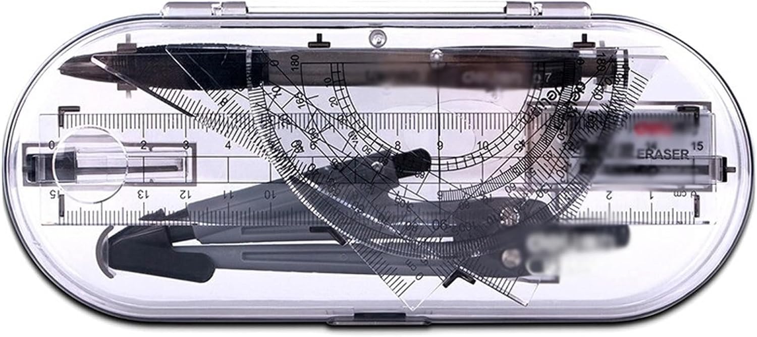 Piccole dimensioni, peso leggero, alta precisione, durevole, facile da trasportare Di piccole dimensioni e leggero, facile da trasportare. Cancelleria in una custodia, facile da riporre. Perfetto strumento professionale per disegno o disegno di cancelleria. Esistono 4 diverse forme di righelli per soddisfare esigenze diverse. Il miglior strumento di disegno circolare per studenti, artisti, matematici, carpentieri.