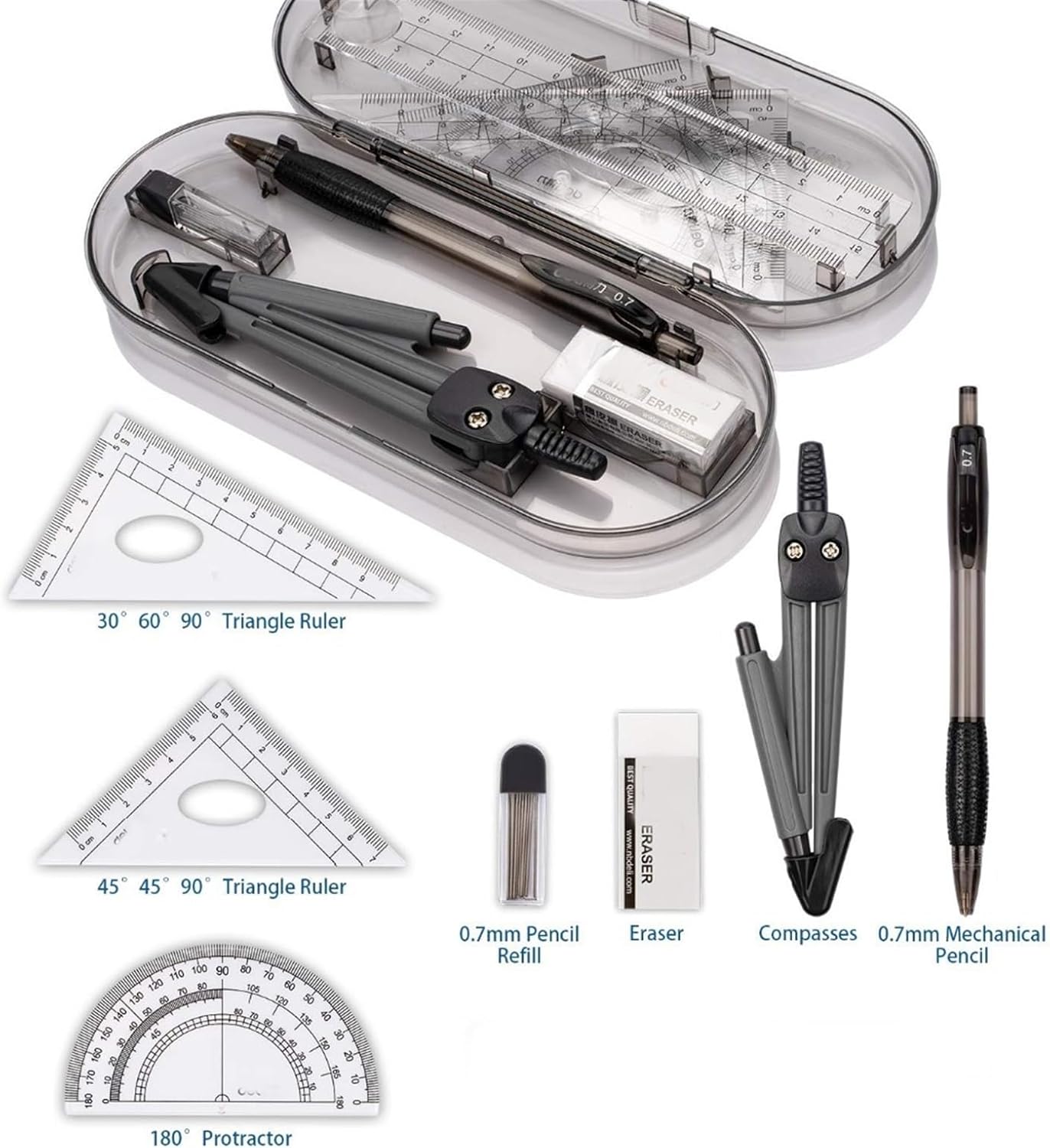 Piccole dimensioni, peso leggero, alta precisione, durevole, facile da trasportare ◎Custodia resistente for bussola for proteggere e conservare gli strumenti in un unico posto nello zaino o sulla scrivania. Facile da trasportare e riporre. ◎Dimensioni della cassa: 6,9*3*1,1"(17,5*7,5*2,8 cm) ◎Kit di strumenti for il disegno della geometria for studenti di diversi ordini di scuola ◎ Regalo ideale for gli studenti delle scuole ◎Facile da portare in classe e da riporre in classe e a casa