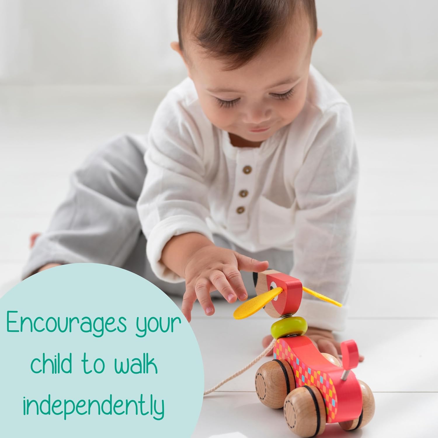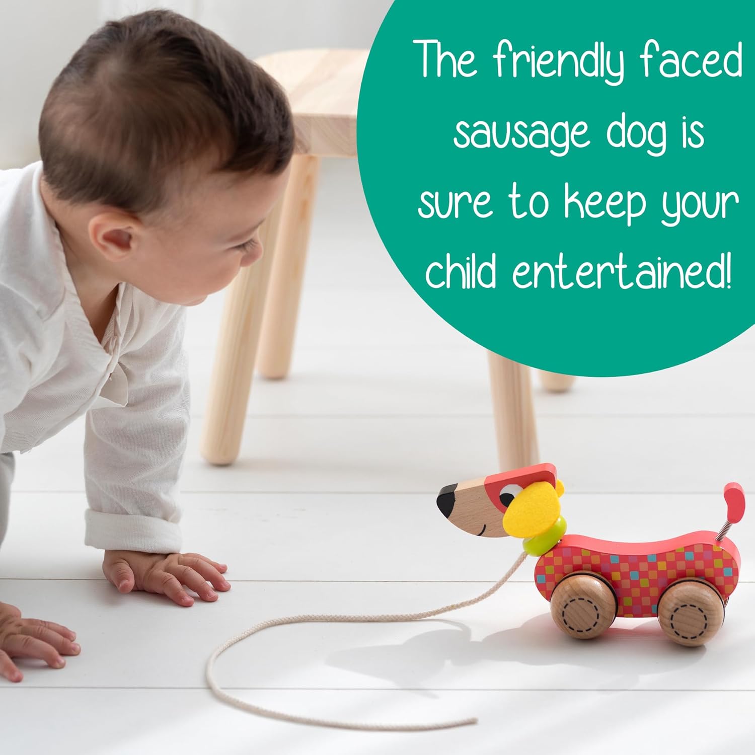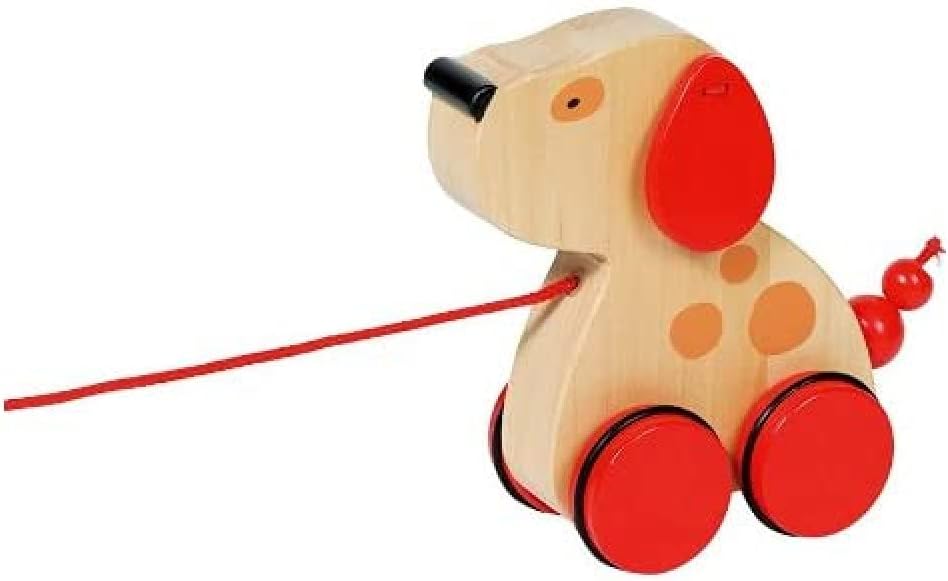 Cagnolino colorato in legno adatto per bambini da 1 a 4 anni Facile da trascinare Sviluppa la coordinazione occhio-mano, la motricità fine e la percezione uditiva Consente l'apprendimento di diversi colori