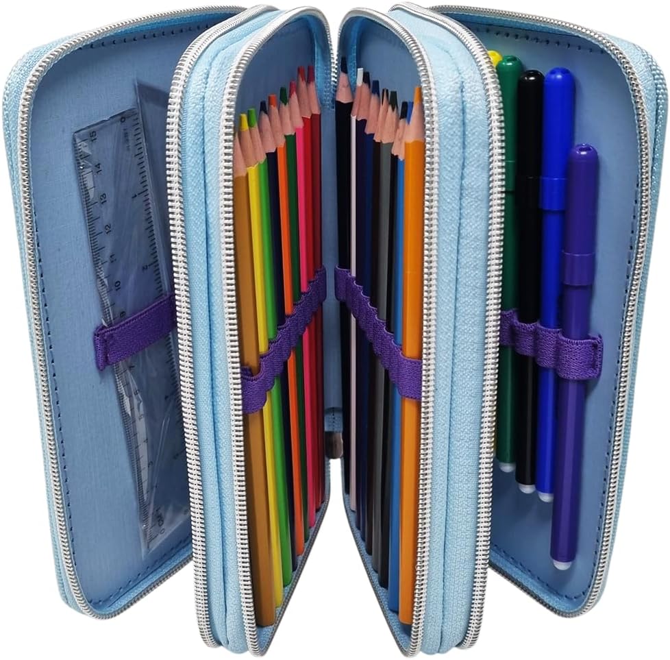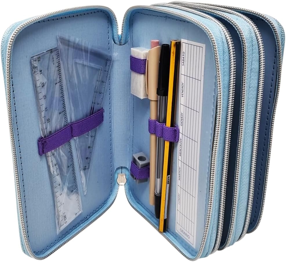 Astuccio multi scomparto, accessorio scolastico pratico e incantevole, perfetto per organizzare e trasportare tutto il materiale necessario per la scuola con un tocco di magia Disney. Questo astuccio è ideale per bambini e bambine che amano Disney e desiderano un prodotto che unisca funzionalità e stile. Il primo scomparto contiene tutti gli strumenti essenziali per la scrittura e il disegno. 44 pezzi: 2 penne, 1 matita, 1 gomma, 1 temperamatite, 1 righello, 1 squadra, 1 tabella orario scolastico, 18 matite colorate, 18 pennarelli Giotto Turbocolor. Soggetto: Disney, Frozen.