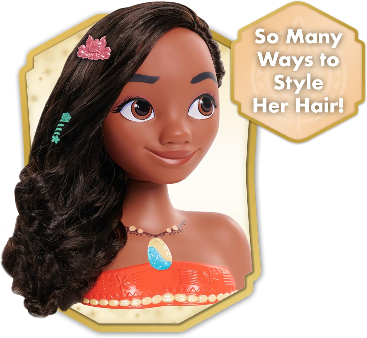Sia che tu stia acquistando un giocattolo per bambini come regalo di festa, regalo di compleanno o semplicemente perché, la testa Disney Princess Moana Styling è una meravigliosa sorpresa! Include: 1 testa per lo styling, 1 corona di fiori, 1 pettine, 4 mollette, 2 ciondoli, 3 spirali per capelli, 1 paio di orecchini, 1 clip a fiore e 3 elastici per capelli. Stile A Disness Princess: la testa Disney Princess Moana Styling consente ai piccoli parrucchieri di pettinare, torcere e arricciare i capelli di Moana in bellissimi nuovi look. Ispira il gioco immaginativo: i bambini adoreranno usare la loro creatività e immaginazione per creare panini firmati, trecce ariose, code di cavallo e riccioli ondulati. I bambini in età prescolare adoreranno fingere di giocare a essere parrucchieri. Da indossare e condividere: mescola e abbina accessori per capelli scintillanti con la testina Disney Princess Moana. C'è così tanto glamour da condividere, tra cui una corona di fiori d'arancio! Più principesse per più divertimento: raccogli tutte le teste Disney Princess Styling e fai amicizia per una festa a tema salone! Ariel, Moana, Rapunzel e Tiana venduti separatamente. Idea regalo per bambini: questo giocattolo Disney Princess è un regalo meraviglioso per bambini dai 3 anni in su.
