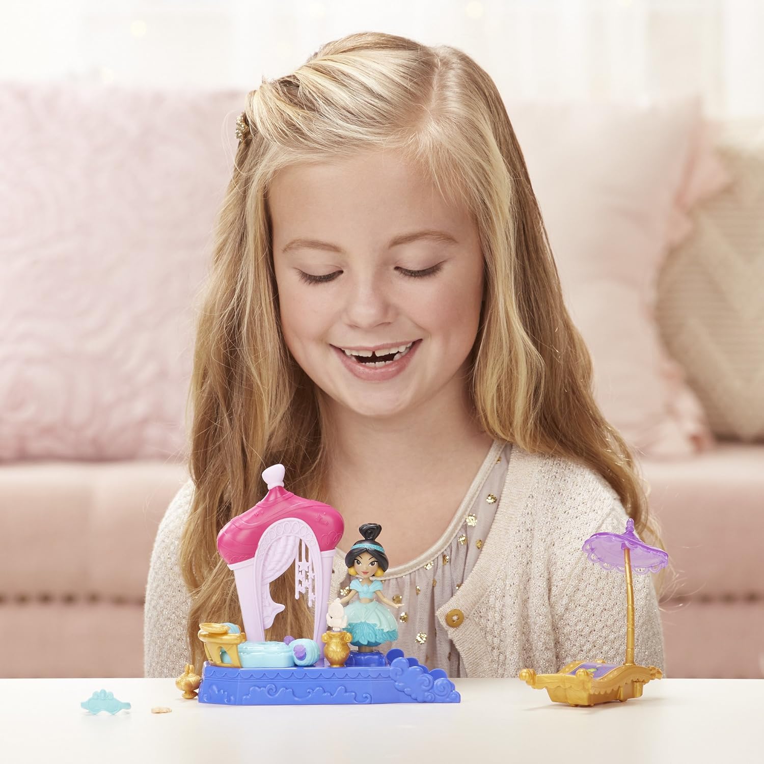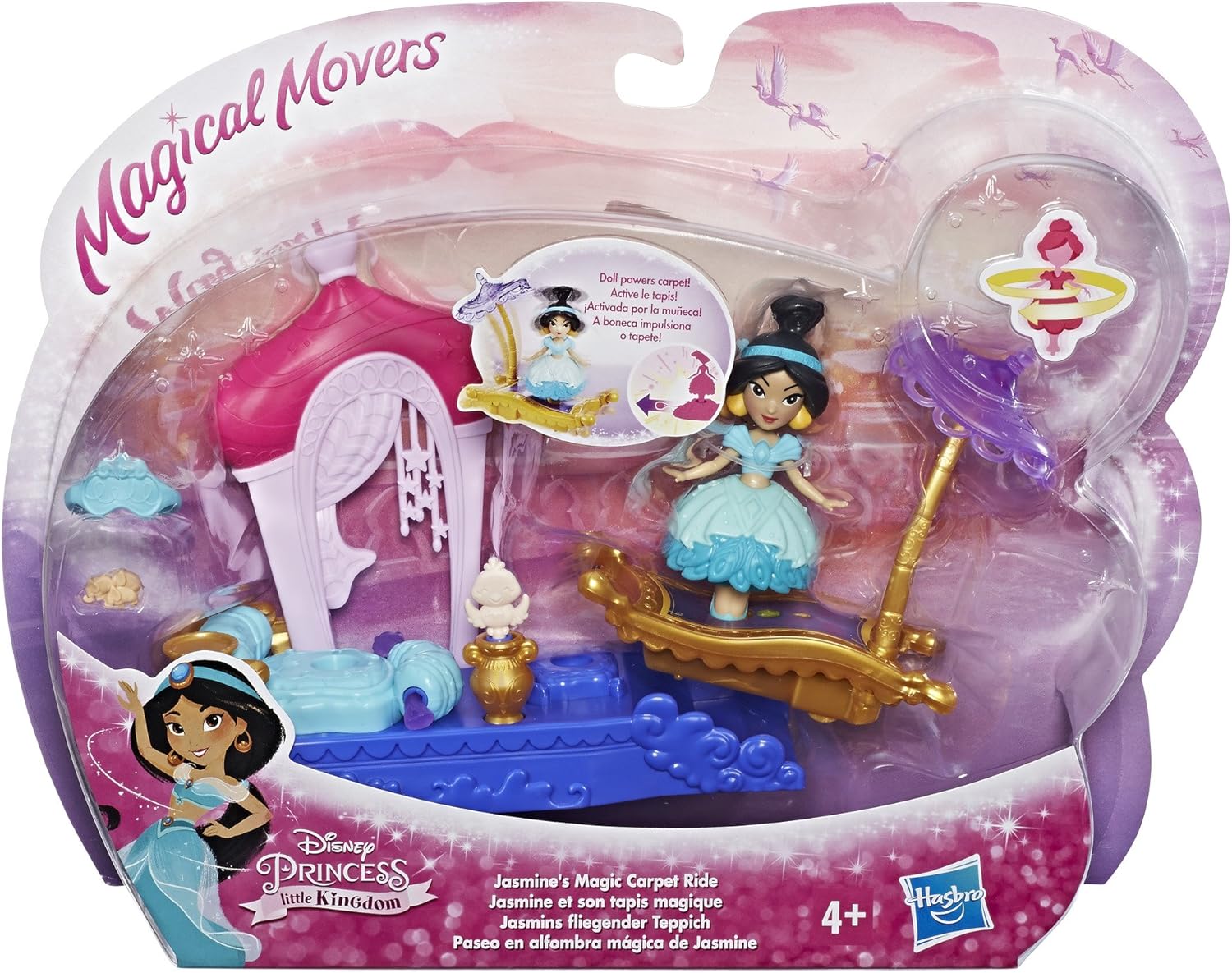 Base di ricarica twirling Jasmine Doll Bambola poteri Magic Carpet movimento Bird Friend gira Magical movers Playset aggiuntivi venduti separatamente Include bambola, Playset, moquette e due accessori