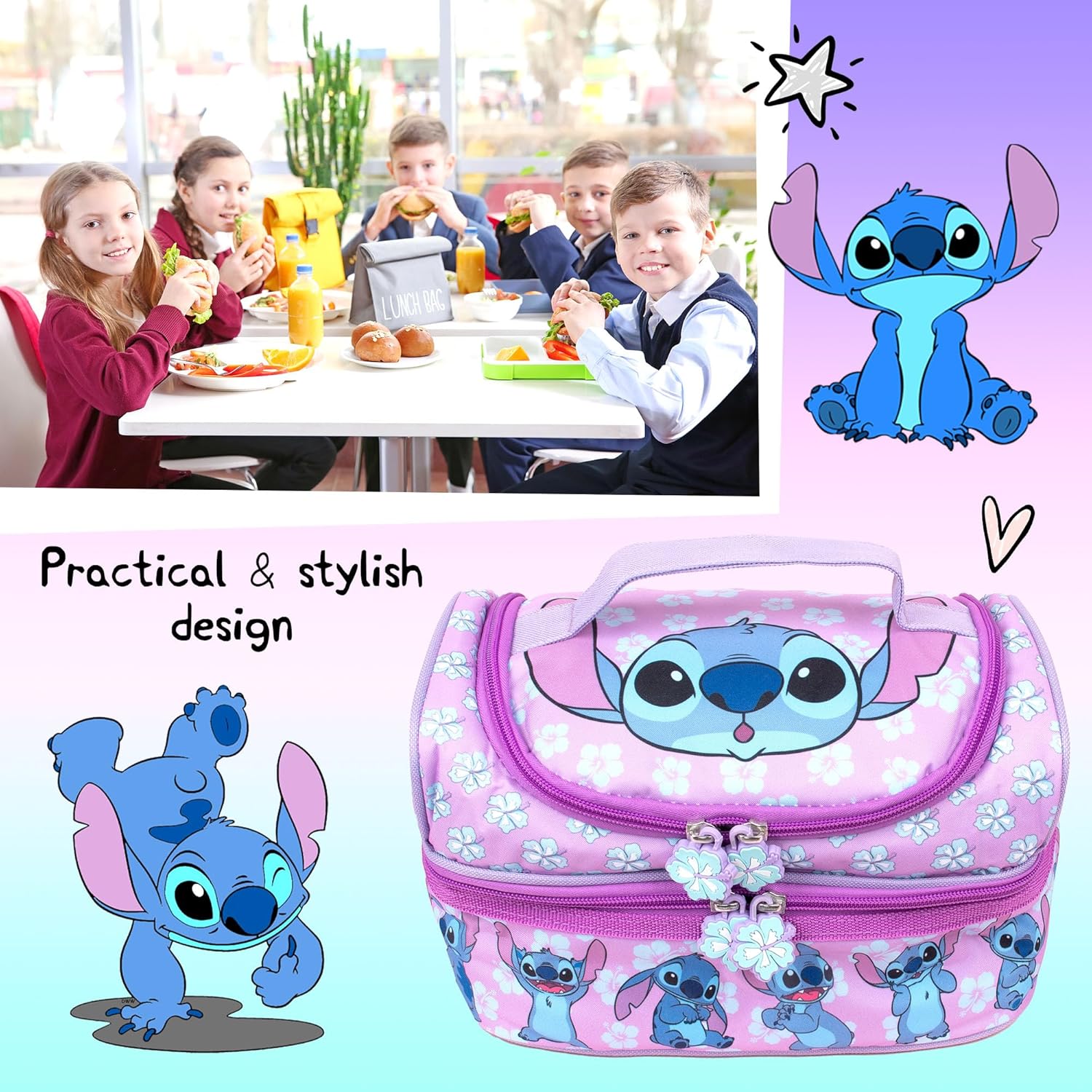 Adorabile design Stitch: aggiungi un tocco di magia Disney all'ora di pranzo con questa affascinante borsa per il pranzo Stitch per ragazze, con l'alieno birichino preferito da tutti. I suoi colori vivaci e il design giocoso lo rendono un delizioso accessorio per gli appassionati del personaggio amato, aggiungendo divertimento e personalità a qualsiasi pasto. Isolamento efficiente: mantiene i pasti freschi e appetitosi con il design completamente isolato di questa borsa per il pranzo scolastico per bambini. Che si tratti di zuppe calde o frutta fredda, questa borsa assicura che il cibo rimanga alla temperatura perfetta fino all'ora di pranzo, fornendo freschezza e sapore affidabili ad ogni boccone. Doppio scomparto per l'organizzazione: con due scomparti separati, questa borsa per il pranzo viola per ragazze offre opzioni versatili per mantenere diversi tipi di cibo ben organizzati. Conservare separatamente cibi caldi e freddi per evitare la miscelazione dei sapori e mantenere una freschezza ottimale, assicurando che ogni pasto sia delizioso come l'ultimo. Convenienza per il giorno della scuola: dimensioni perfette per pranzi scolastici, questa borsa per il pranzo Stitch è il compagno ideale per studenti impegnati. La sua grande capacità e le sue caratteristiche pratiche rendono facile confezionare pasti e snack nutrienti per la giornata a venire, promuovendo abitudini alimentari sane e assicurando che la fame non sia mai un problema durante l'orario scolastico. Completa la collezione: scopri la nostra vasta collezione di prodotti Disney Stitch. Personalizzate il vostro Stitch, berretto da baseball o borsa con coulisse. Anche nella nostra gamma Stitch abbiamo, borse per il pranzo, marsupi e zaini. Immergiti nel mondo di Disney Stitch con la nostra vasta gamma di prodotti, ognuno progettato per migliorare la tua esperienza di fan e mostrare il tuo amore per Stitch. Sia che ti prepari per un'avventura o esprimi il tuo fandom, ti abbiamo coperto.