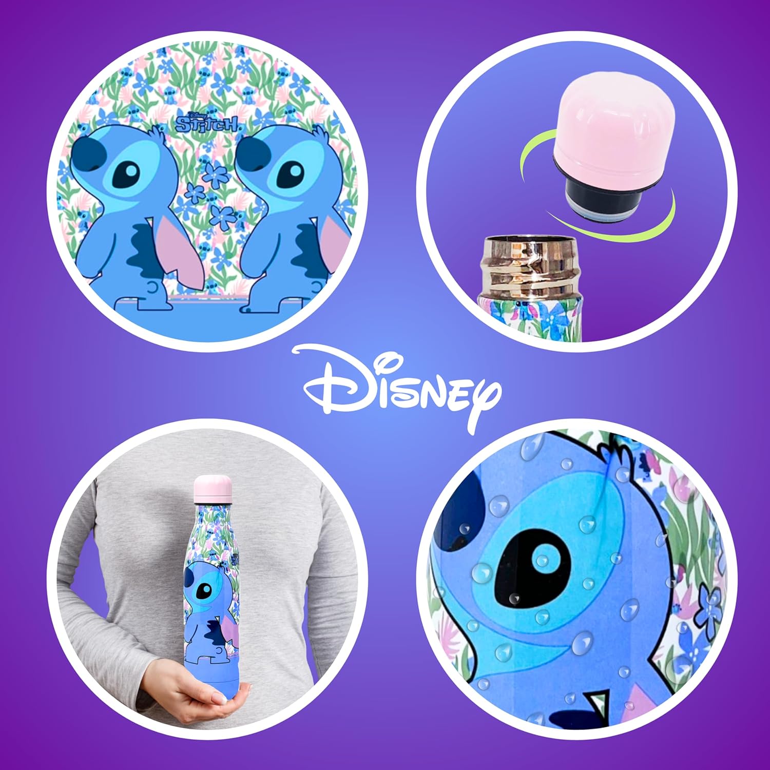 Bottiglia Disney Stitch riutilizzabile Marca: Disney Disney Stitch Bottle Bottiglia d'acqua riutilizzabile dal design in alluminio durevole per ragazze Capacità della bottiglia da viaggio 500 ml - Rosa DS-5656-BT