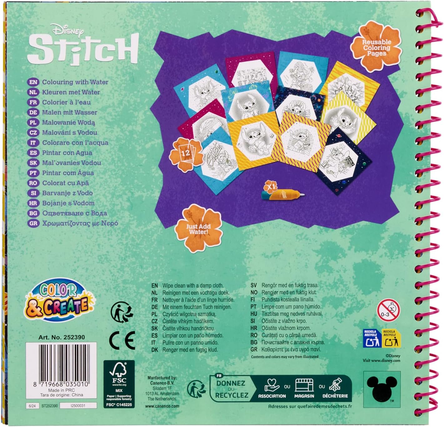 Libro da colorare con acqua: con il libro da colorare Disney Stitch la pittura diventa un'esperienza magica – basta riempire la penna ad acqua in dotazione con acqua e i colori appariranno come per magia! Pagine riutilizzabili: le 12 pagine piene di graziosi motivi a punto possono essere ridipinte ripetutamente. Dopo l'asciugatura, il colore scompare – ideale per ore di divertimento senza disordine. Penna ad acqua inclusa: il set include una penna ad acqua stabile e ricaricabile, perfetta per le mani piccole. Non sono necessari materiali o colori aggiuntivi: basta aggiungere acqua e iniziare! Favorisce la creatività: i bambini imparano giocosamente a usare i colori, allenano le abilità motorie e la concentrazione. Un fantastico kit creativo per bambini dai 3 anni in su: pulito, sicuro e sostenibile. Idea regalo perfetta: sia per un compleanno o come sorpresa, questo regalo Lilo e Stitch entusiasma genitori e bambini. Prodotto con licenza ufficiale Disney con carta certificata FSC e lavorazione di alta qualità.