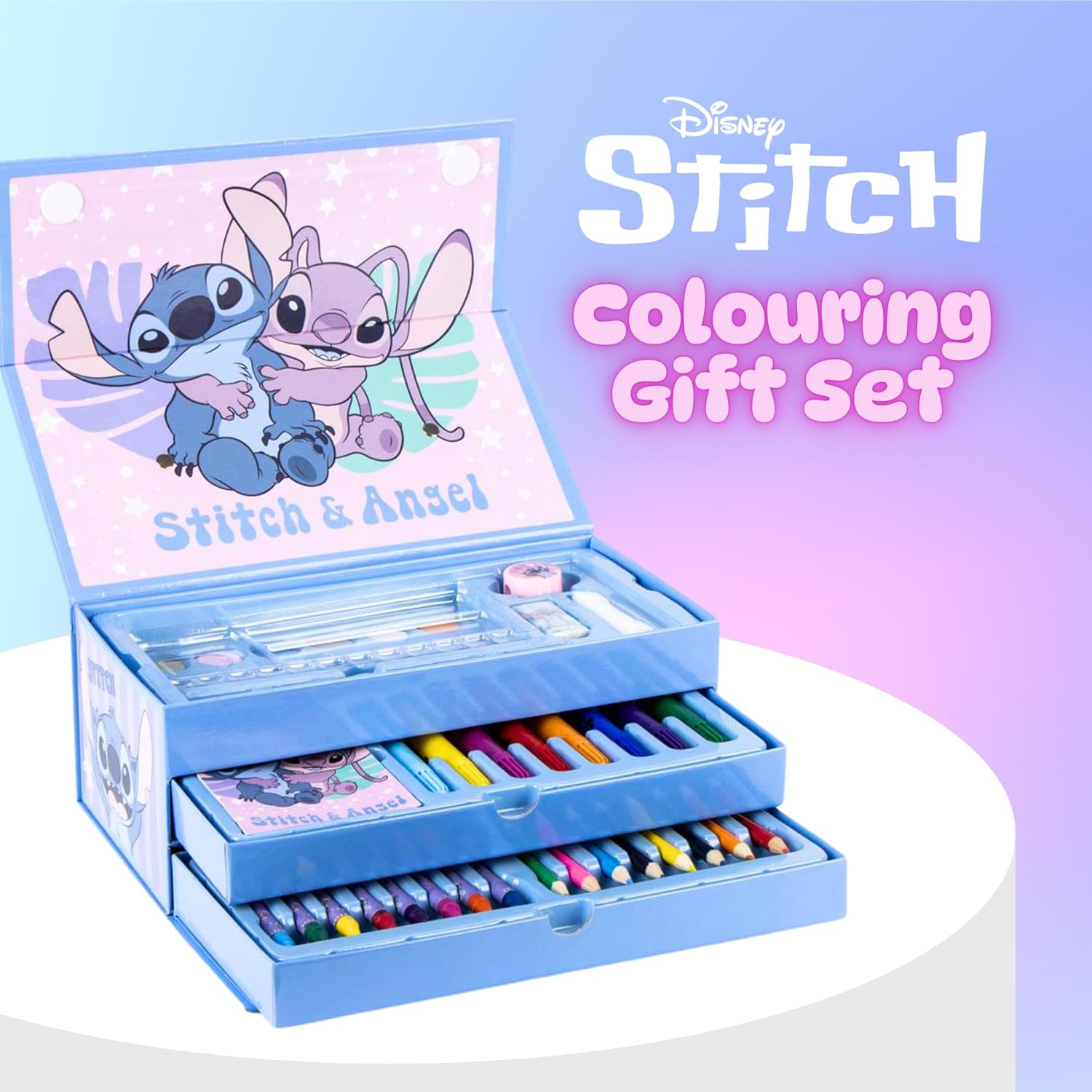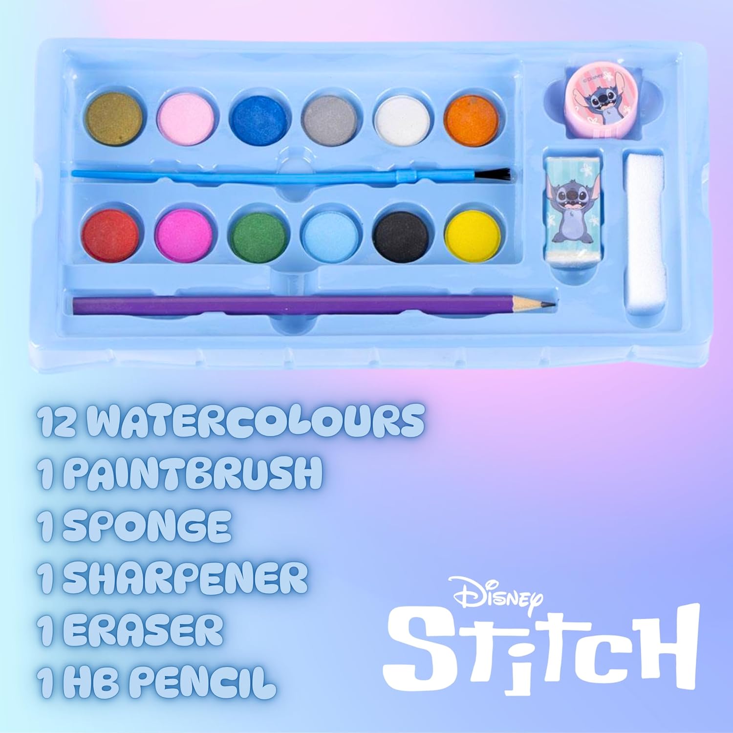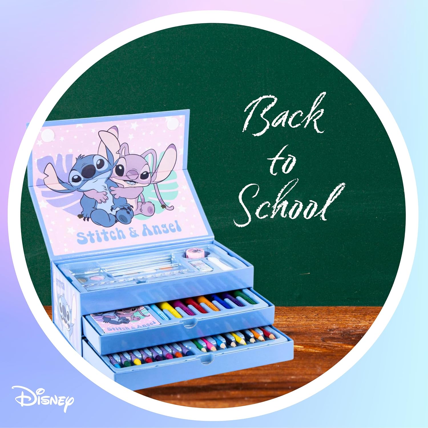 Disney Stitch Set Di Cancelleria, Include Matite Colorate, Pennarelli, Acquerelli, Pennello, Spugna, Matita, Temperamatite, Gomma, Pastelli, Quaderno, Astuccio, Set Scolastico Per Ragazz
