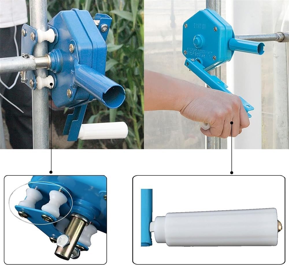 Dispositivo di ventilazione per serre: il nostro avvolgitore manuale per film risolve i problemi di bassa efficienza del film e di elevata manodopera nelle serre tradizionali. Può sostituire o ridurre la manodopera umana, risparmiando tempo e fatica. È un prodotto innovativo per le moderne macchine agricole. Ampia gamma di utilizzi: l'argano manuale per pellicola è adatto per l'installazione sulla parete laterale. Il modello più lungo può essere arrotolato fino a 120 m e utilizzato in diverse serre, come serre orticole, serre per polli, serre di allevamento, serre per fiori, serre per frutta e verdura, ecc. Dispositivo autobloccante: l'argano manuale della serra è dotato di un dispositivo autobloccante che può fermarsi in qualsiasi posizione senza scivolare, consentendo di decidere liberamente le dimensioni della finestra della serra per ottenere un perfetto effetto di ventilazione senza dispositivi ausiliari. Puleggia di alta qualità: il cuore del verricello manuale per serre è una puleggia. La puleggia avvolge il telo della serra muovendosi su e giù. La puleggia, realizzata in materiale vinilico, ha un effetto anti-invecchiamento. Il rullo è scorrevole e consente di risparmiare manodopera. Migliora l'efficienza del lavoro: il dispositivo avvolgitore per pellicole da serra può arrotolare fino a 120 m di pellicola; anche una sola persona può completare questo fantastico lavoro.