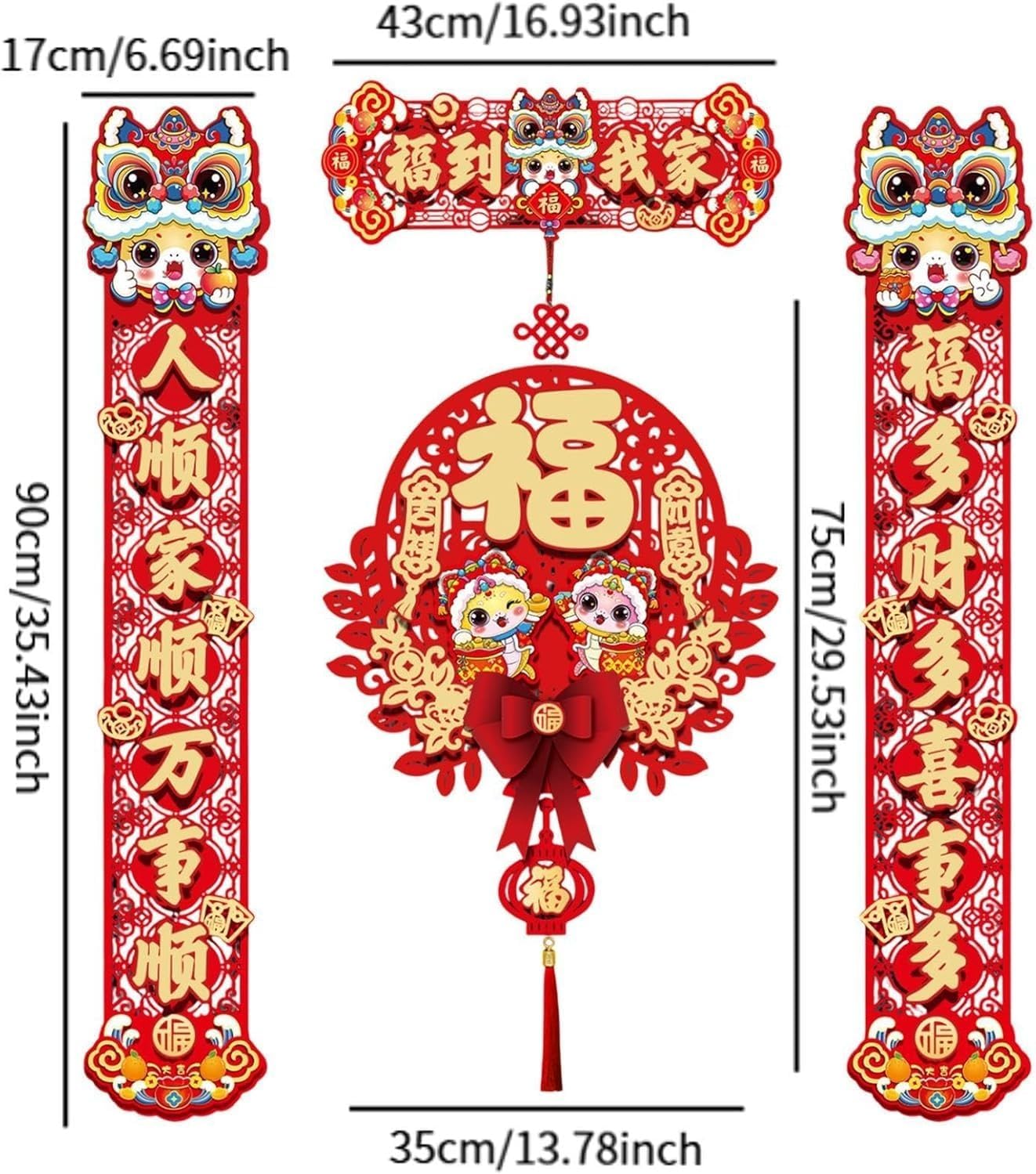 Decorazione orientale tradizionale con distici cinesi for la festa di primavera, con elementi decorativi classici, ricchi di atmosfera cinese, che portano un'atmosfera di felice capodanno cinese nella tua casa Informazioni sulle dimensioni: ogni singolo distico della festa di primavera misura circa 17 cm x 90 cm/6,69 pollici x 35,43 pollici, striscione 17 cm x 43 cm/6,69 pollici x 16,93 pollici, decorazione pendente Fu 75 cm x 35 cm/29,53 pollici x 13,78 pollici Materiale: l'ornamento appeso a distici del capodanno lunare cinese è realizzato in tessuto floccato, cartone, leggero OccasioneSet di decorazioni for porte d'ingresso con distici for la festa di primavera, ideali da appendere alle porte, al cancello d'ingresso, ecc. Distici for porte della festa di primavera: decorazione for il capodanno cinese con colori vivaci e parole specifiche, divertenti e festose, facili da creare un'atmosfera festosa.
