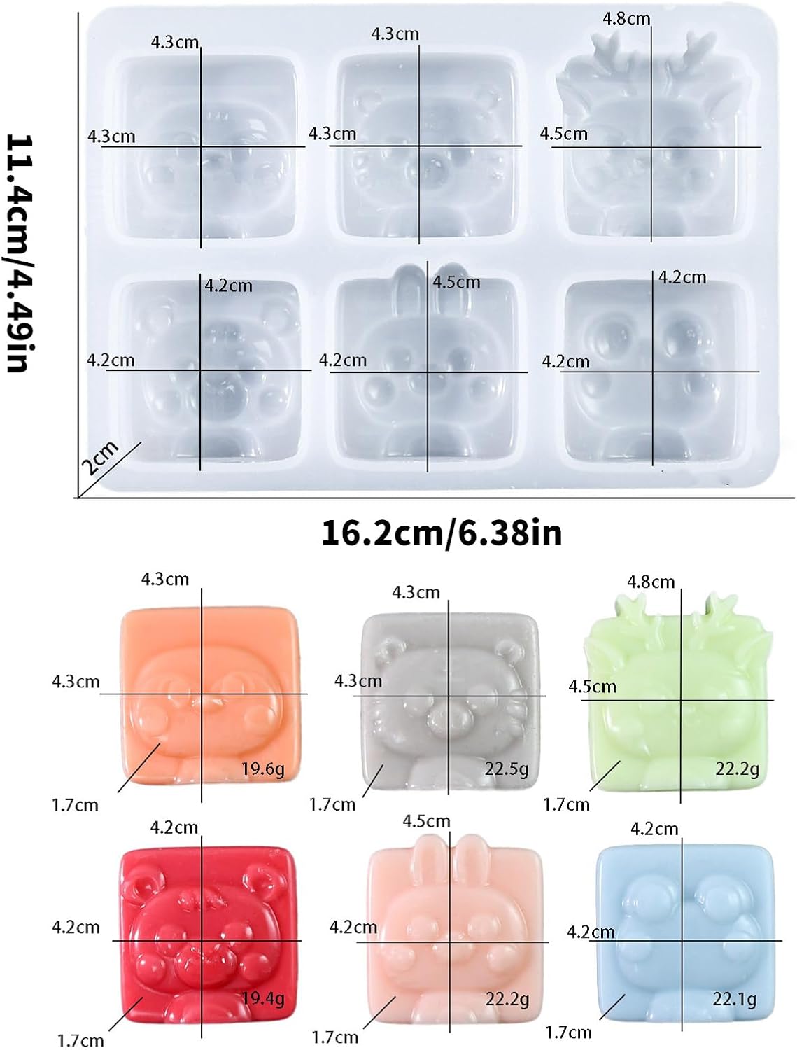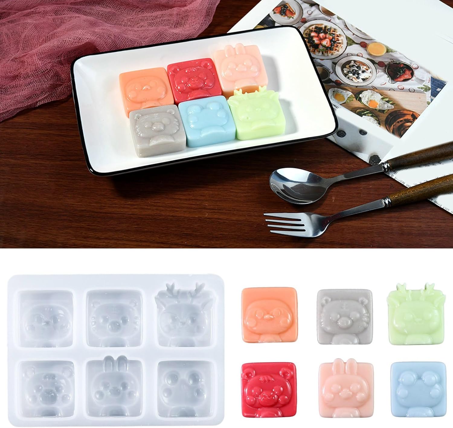 La parte anteriore antiaderente e i design intricati rendono questo stampo in silicone un must per i fotografi di cibo e i creatori di regali personalizzati che mirano allo scatto perfetto o a un regalo unico Adatto per gli appassionati di pasticceria che desiderano aggiungere un tocco di divertimento alla loro creazione culinaria o per i genitori che desiderano darsi da fare con i propri figli Scatena la tua creatività in cucina con il nostro stampo in silicone a 6 cavità, perfetto per realizzare cioccolatini e torte che delizieranno tutte le età Realizzato in silicone resistente alle alte temperature. Questo stampo offre flessibilità per una facile sformatura per garantire che i tuoi dolcetti siano dettagliati e vibranti come lo sono. Ravviva qualsiasi lezione di cucina, festa di compleanno o riunione di famiglia con questi stampi per animali che renderanno ogni occasione un po' più speciale