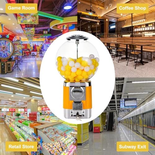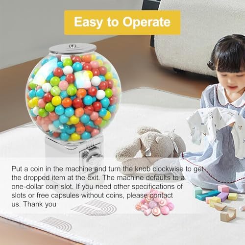 【Distributore automatico di caramelle】: Il nostro distributore automatico a gettoni è fatto della lega di alluminio di alta qualità e della lega di zinco. Il barattolo della capsula è realizzato in materiale PS ad alta trasparenza, che può visualizzare meglio i prodotti all'interno e consentire ai clienti di visualizzare il processo di capovolgimento e caduta dei prodotti, ed è resistente ai graffi e facile da mantenere. Grande capacità: la capsula a sfera sul distributore automatico di caramelle ha un diametro di 28 cm e può contenere circa 240 capsule giocattolo (3,2 cm). Può evitare frequenti aggiunte di capsule giocattolo o rimozione di monete, soddisfacendo anche le esigenze di intrattenimento della maggior parte dei visitatori del centro commerciale e del parco divertimenti. 【Alta sicurezza】: il distributore automatico è dotato di una serratura sulla cassetta dei contanti e sulla parte superiore della macchina, e solo la nostra chiave corrispondente può aprirla. Può impedire che i giocattoli e le monete vengano rubati. Il telaio può essere ruotato, il che è conveniente per i clienti vedere la posizione degli articoli all'interno della macchina. Facile da usare: tutto quello che devi fare è mettere una moneta nella macchina e ruotare la manopola di 360° in senso orario per far cadere oggetti alla presa. Questo processo è facile da padroneggiare e richiede solo pochi minuti. L'uscita è molto liscia e ha un coperchio. Apri il coperchio per ottenere facilmente gli oggetti a cui ti rivolgi e chiudilo per evitare che l'oggetto cada. 【Scenario di applicazione】: questa macchina non richiede di stare in piedi tutto il giorno, è sufficiente aggiungere merci ed estrarre monete regolarmente. Il design interessante della macchina della capsula può essere integrato in diversi stili di decorazione e collocato in negozi di dessert, minimarket, librerie e altre occasioni.