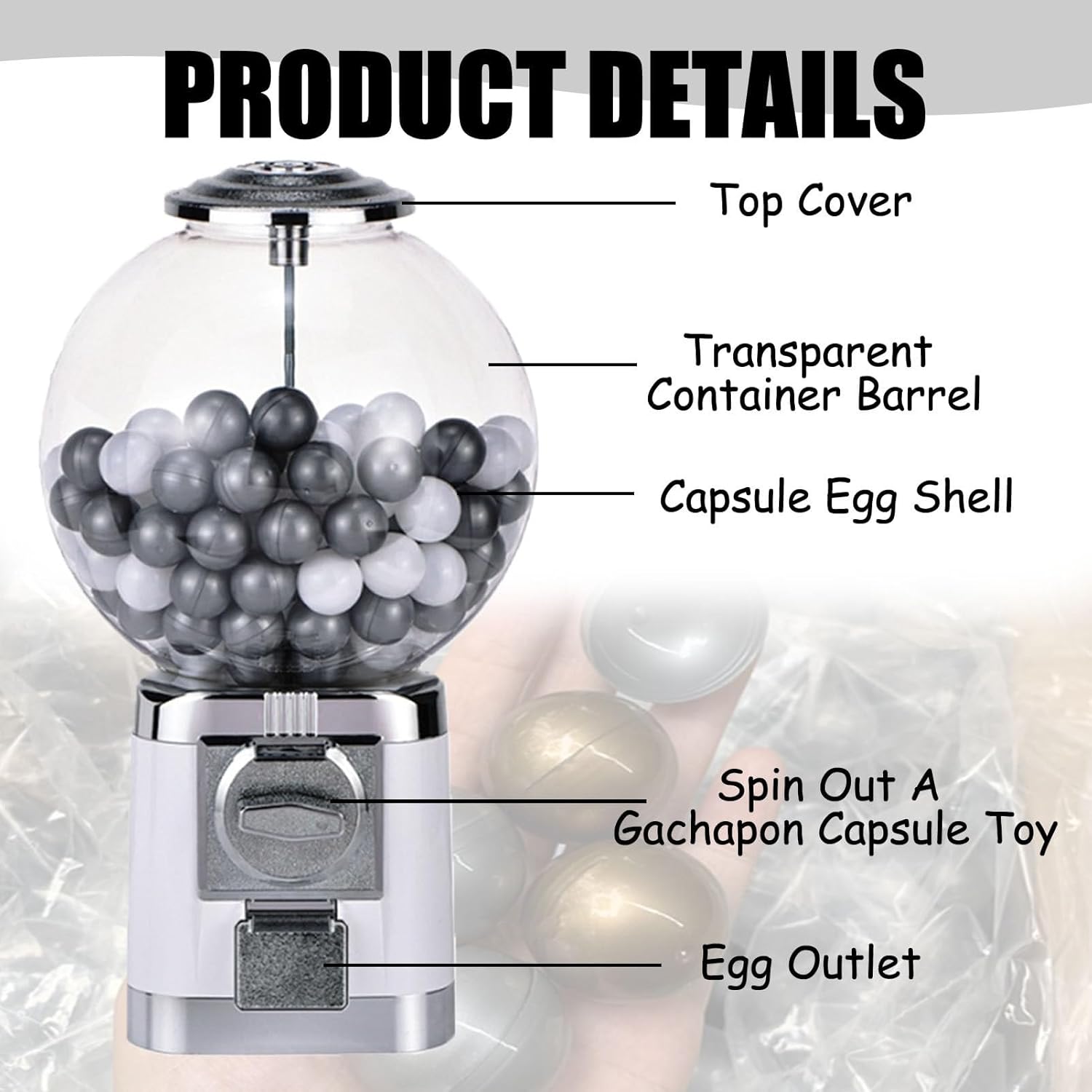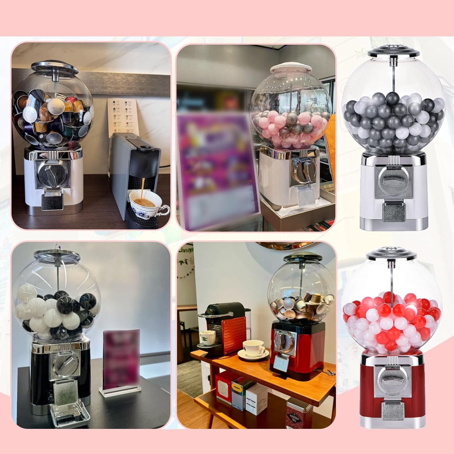 ☛【ALTA CAPACITÀ】Il serbatoio trasparente della macchina per capsule può raggiungere un diametro massimo di 25 cm, offrendo ampio spazio (capacità: 240 palline da 1,26 pollici di diametro) per conservare palline elastiche, giocattoli. Ti forniamo 100 palline vuote. ☛【PROTEZIONE DEI GIOCATTOLI IN CAPSULE】 Il coperchio superiore della nostra macchina per gomme da masticare è dotato di una serratura che può essere aperta solo con la nostra chiave corrispondente. Pertanto, nessuno può prendere nulla all'interno senza il tuo permesso. ☛【COSTRUZIONE RESISTENTE】 Il nostro distributore automatico di caramelle è realizzato in lega di alluminio e lega di zinco di alta qualità. La base robusta garantisce una buona stabilità e una forte capacità di carico, senza preoccuparsi che si scuota e si ribalti. ☛【DESIGN TRASPARENTE】 Distributore automatico di grandi dimensioni con un'attenzione particolare alla comodità dell'utente, il distributore automatico domestico adotta un design trasparente, consentendo ai clienti di vedere facilmente gli articoli all'interno. ☛【MACCHINA MULTIFUNZIONALE】Con questo distributore di giocattoli, non sarà più necessario stare tutto il giorno accanto alla macchina. Basta solo aggiungere gli articoli, risparmiando tempo ed energia. Il design interessante lo rende anche unico ed elegante, trasformandolo perfettamente in un elemento decorativo.