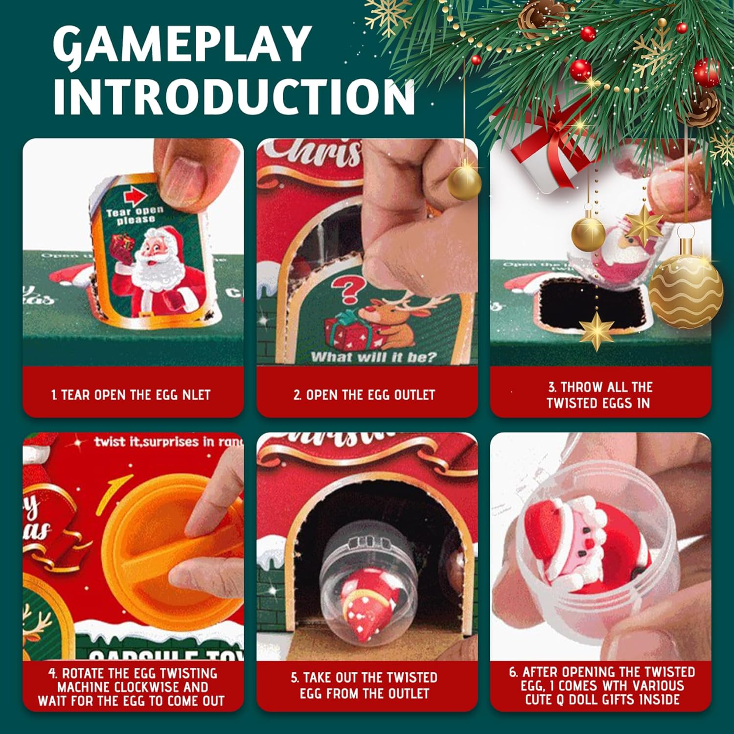 Tema natalizio festivo: questa mini macchina per artigli presenta un vivace design natalizio perfetto per feste e celebrazioni dell'asilo, migliorando il divertimento e l'eccitazione festivi Portatile e pronto per la casa: compatto e leggero, questa macchina per artigli è ideale per l'uso domestico o per piccole feste, creando ore di divertimento senza occupare molto spazio Include uova a sorpresa: viene fornito con 6 uova a sorpresa piene di divertenti giocattoli in capsule, aggiungendo elementi di mistero e gioia che mantengono i bambini emozionati e divertiti Funzionamento a misura di bambino: i controlli degli artigli facili da usare sono progettati specificamente per i bambini, garantendo un gioco pratico e sicuro che sviluppa la coordinazione occhio-mano e le capacità motorie Distributore automatico di capsule giocattolo multifunzione: combina la gioia di un distributore automatico di capsule giocattolo con una macchina artiglio interattiva, rendendolo un giocattolo unico per bambini che promuove il coinvolgimento e la creatività durante il gioco