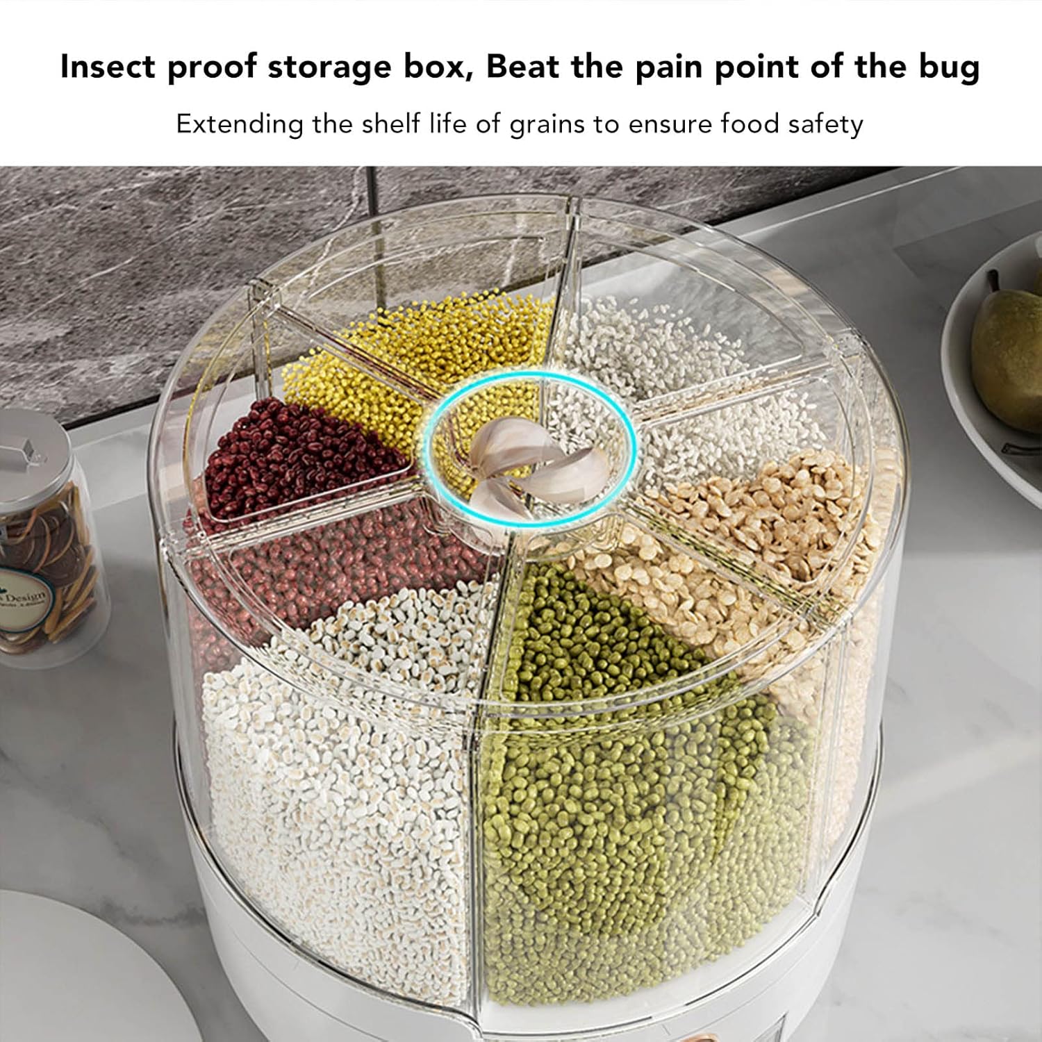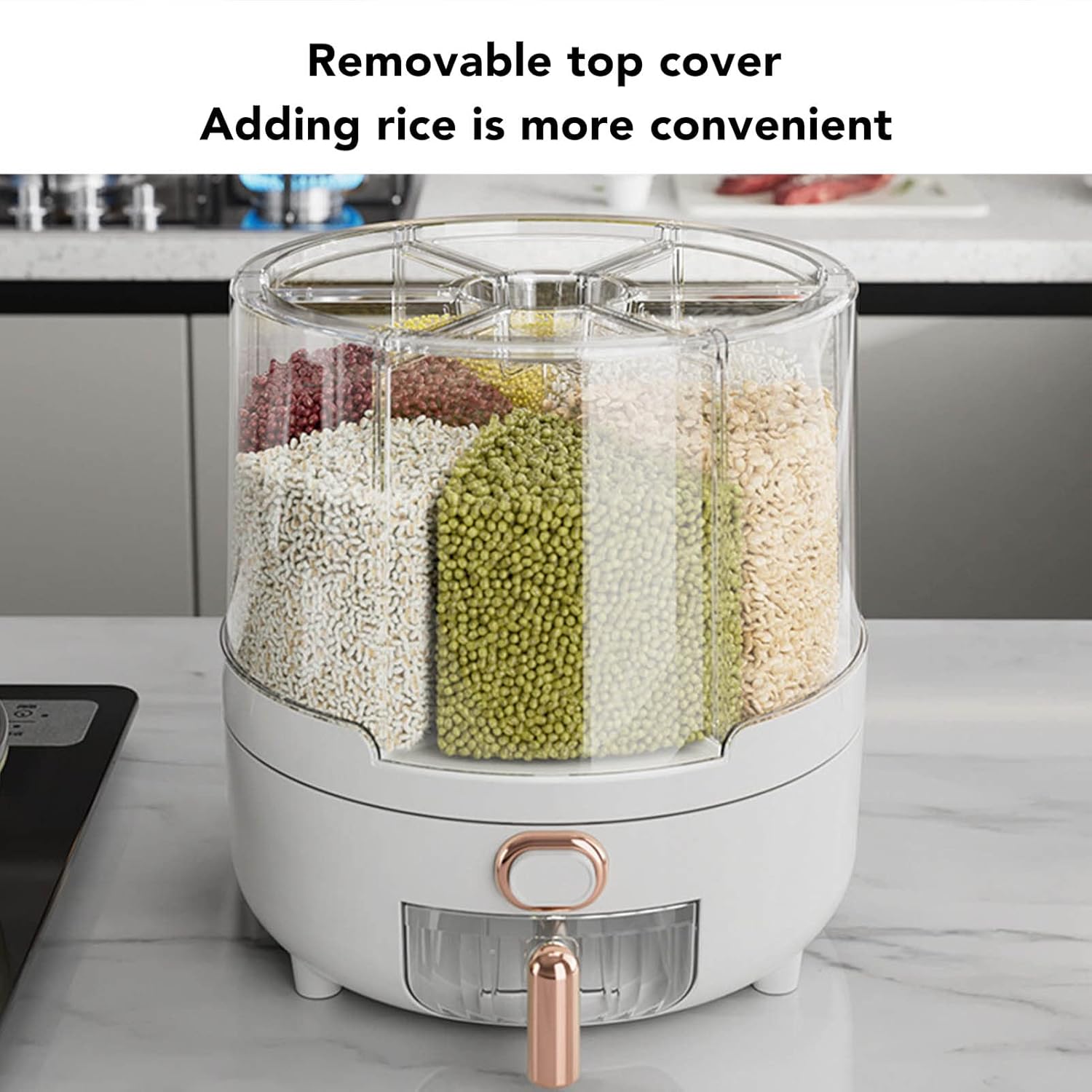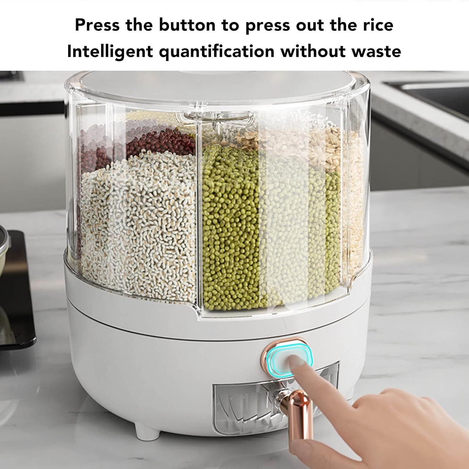 [6 compartimenti organizzati organizzati] Il distributore di cereali rotanti a 360 gradi dispone di sei ampi scompari separati da deflettori interni, che consentono di conservare più tipi di cereali secchi come riso, fagioli, avena e altro ancora. Il design del corpo trasparente offre una chiara visibilità degli oggetti immagazzinati, rendendo facile monitorare le quantità e mantenere la cucina organizzata. per coloro che amano soluzioni di conservazione degli alimenti puliti ed efficienti. [Design a rotazione regolare a 360 °] Questo contenitore di stoccaggio a grana multifunzionale vanta un rivoluzionario meccanismo di rotazione a 360 gradi, consentendo l'accesso senza sforzo a qualsiasi compartimento con solo una svolta delicata. Non più scavo o lotta per raggiungere i cereali desiderati. La rotazione regolare garantisce convenienza e praticità, rendendolo uno strumento essenziale per cucine impegnate e famiglie numerose. [Uso versatile di grande capacità] Progettato per la massima conservazione, questo distributore di grano può contenere quantità sostanziali di vari cibi secchi tra cui riso, fagioli mung, soia, fagioli rossi, avena, miglio e orzo. La sua generosa capacità lo rende ideale per lo stoccaggio sfuso mantenendo la dispensa senza ingombri. Un must per cuochi a casa e appassionati di preparazione dei pasti che apprezzano le soluzioni di organizzazione e risparmio spaziale. [Disposizione intelligente con un ] Sperimenta il dispensare grano senza problemi con il nostro innovativo con un . Basta estrarre il secchio inferiore per rilasciare la quantità desiderata di cibo con un controllo preciso. La funzione di rimozione quantitativa intelligente elimina le fuoriuscite e i rifiuti, rendendola perfetta per la cottura quotidiana, la cottura o la preparazione dei pasti. Progettato per comodità ed efficienza in qualsiasi cucina. [Materiali durevoli premium] Crea con materiali PP e TPR di alta qualità, questa scatola di stoccaggio in cereali offre una durata e longevità eccezionali. La costruzione robusta è resistente all'usura, resistente all'impatto e costruita per resistere all'uso quotidiano. I materiali sicuri di cibo assicurano che i tuoi cereali rimangono freschi e protetti. Una soluzione di archiviazione affidabile e duratura per famiglie attente alla salute e cucine professionali.