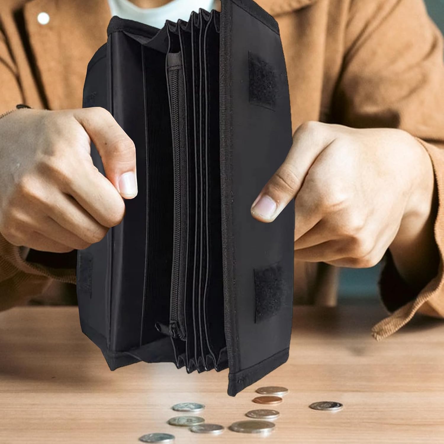 Soluzione di deposito flessibile: Questo distributore di sacchetti per monete offre un deposito flessibile con dimensioni versatili, progettato per adattarsi a diverse monete e garantire un uso funzionale per varie esigenze Layout funzionale: Struttura a doppio livello con portamonete e portacarte, spazio dedicato per biglietti e utilizzo flessibile, garantisce una soluzione di archiviazione pratica per oggetti di uso quotidiano Garanzia di maggiore durata: Il tessuto robusto di questo dispenser per sacchetti di monete assicura resistenza a strappi e deformazioni, mantenendo superfici lisce e prestazioni affidabili anche dopo ripetuti utilizzi giornalieri Compagno quotidiano leggero: Ideato per una comodità ottimale, questo distributore di sacchetti per monete compatto è progettato per essere pratico da taschino e pronto per i viaggi, con una struttura leggera che elimina il peso extra durante gli spostamenti o le avventure Organizzazione Moderna:Grazie alla chiusura a zip e agli scomparti su misura, facilita l'organizzazione intuitiva, riduce al minimo gli scivolamenti e supporta il recupero immediato delle monete permettendo una classificazione esatta senza sforzo