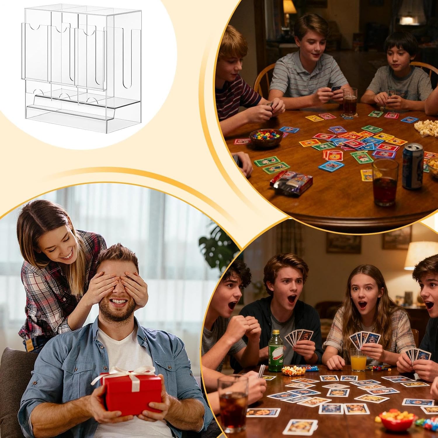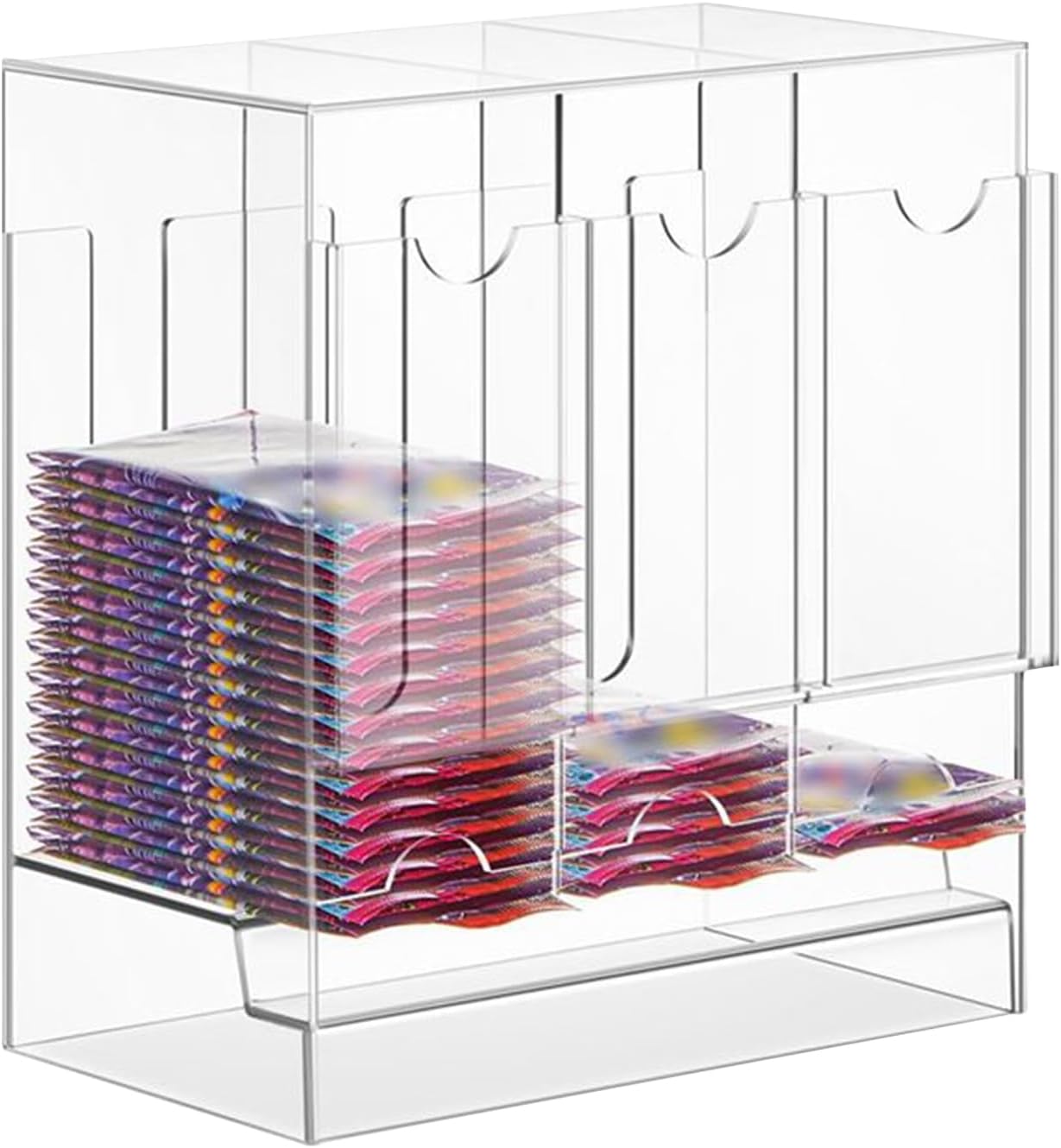 Design ad espansione flessibile: Questo dispenser per booster a 3 slot offre una soluzione di archiviazione adattabile per collezioni in crescita, consentendo di impilare orizzontalmente o posizionare side-by-side per massimizzare l'efficienza dello spazio mantenendo tutto organizzato in stanze da gioco o aree espositive Design Organizzato a 3 Scomparti: Il Booster Pack Dispenser presenta un design a tre scomparti che mantiene la scrivania ordinata e organizzata, offrendo ampio spazio di archiviazione per booster pack, carte da gioco o piccoli , ideale per collezionisti e giocatori che valorizzano un ambiente di gioco senza disordine durante le sessioni Organizzazione Pratica: Protegge i portacarte da fornendo una protezione duratura, per giocatori e collezionisti che desiderano mantenere la qualità impeccabile delle carte senza sforzo, con un design compatto che massimizza l'accessibilità e l'ordine visivo Soluzione visiva elegante: Design sleek e integrazione seamless migliorano accessibilità e organizzazione in ambienti come uffici o aree point-of-sale, mantenendo un aspetto sofisticato e funzionale Manegevole nell'uso: Il design accessibile con scanalatura frontale aperta e meccanismo intuitivo di apertura/chiusura semplifica il prelievo di carte, offrendo praticità in aree di reception o banchi di registrazione eventi la velocità è essenziale per la gestione delle card