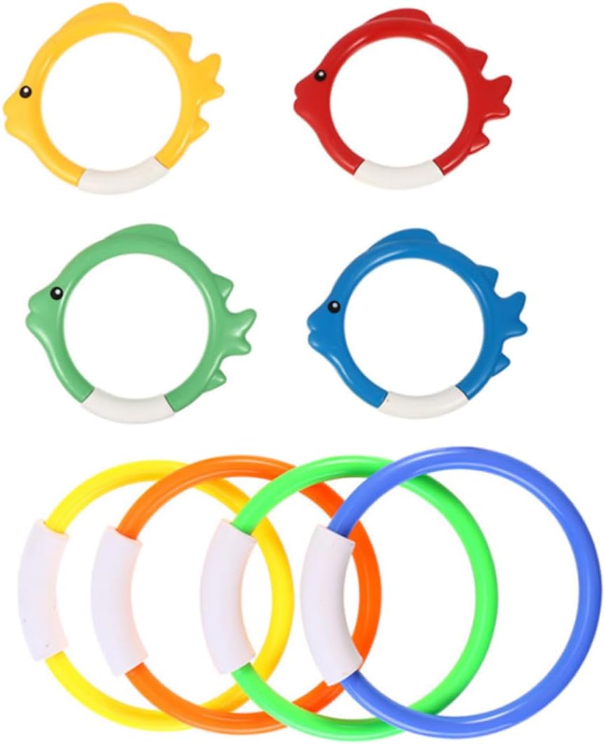 [DURABLE AND NON-TOXIC MATERIAL] Made of strong and corrosion-resistant plastic for long-lasting use. [KID-FRIENDLY DESIGN] Smooth edge design ensures safety for children's hands during play. [EASY TO SEE AND RETRIEVE] Bright colors make the rings visible underwater for easy retrieval, encouraging swimming skills. [ENHANCE SWIMMING CONFIDENCE] A great training tool to boost children's confidence in diving and swimming abilities. [EFFICIENT SKILL IMPROVEMENT] for beginners to practice diving and retrieve skills, motivating progress in swimming.