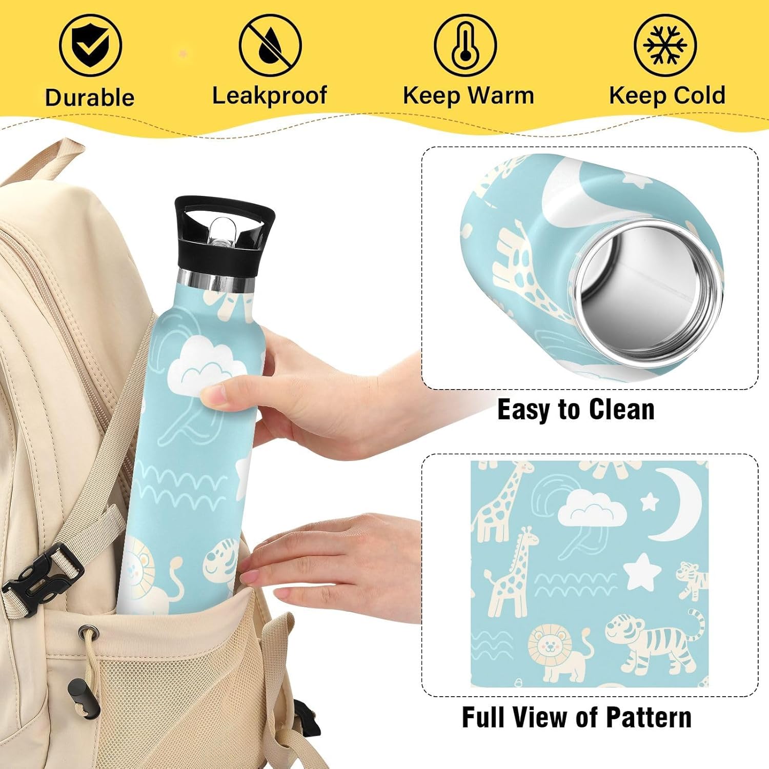 Isolamento premium: questo {keyword} presenta una struttura sottovuoto a doppia parete. Lo strato esterno in acciaio inox per uso alimentare e il rivestimento interno con uno strato termoisolante e blocco sottovuoto offrono una grande ritenzione di calore e freddo. Dite addio alle bevande tiepide! Coperchio 2 in 1: i due coperchi possono essere cambiati in qualsiasi momento: la cannuccia per sorseggiare facilmente o un coperchio girevole per una rapida idratazione. A tenuta stagna Avventura Ready: meccanismo Twist-lock e guarnizioni in silicone rinforzato impediscono fuoriuscite anche capovolte negli zaini. Affidati per gite in kayak o metropolitane affollate. Grande capacità: con una bottiglia d'acqua di grande capacità da 590 ml, questa {parola chiave} è perfetta per rimanere idratati durante lunghi allenamenti o attività all'aperto. Questa borraccia per bambini è ideale per attività all'aperto, palestra, lavoro o uso domestico. Portalo con te ovunque tu vada e rimani idratato tutto il giorno.