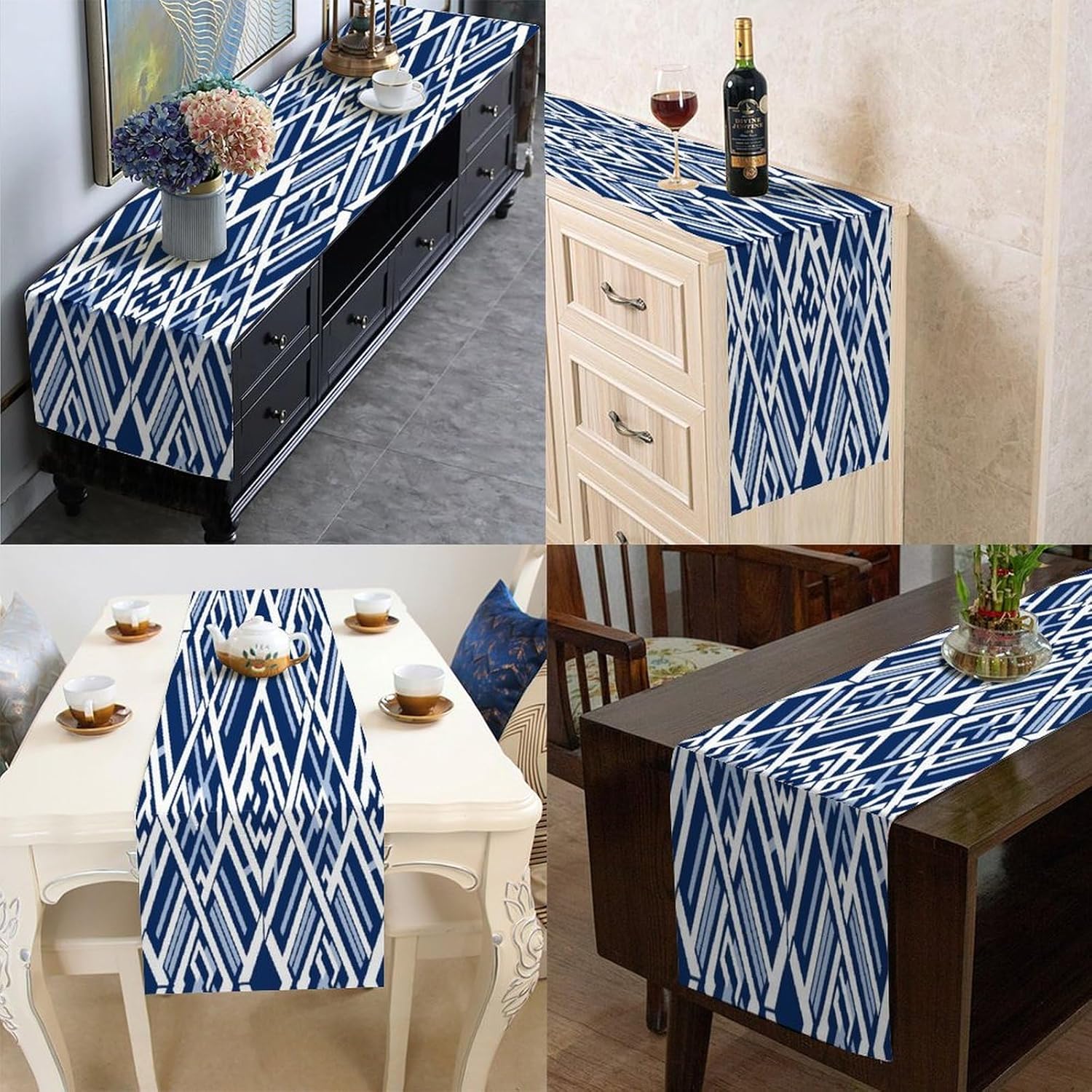 Divertente chef pizzo campo traliccio stampa geometrica blu cotone lino runner da tavolo stile fattoria decorazione da cucina runner per tavolo da pranzo da cucina decorazione per occasioni speciali per feste