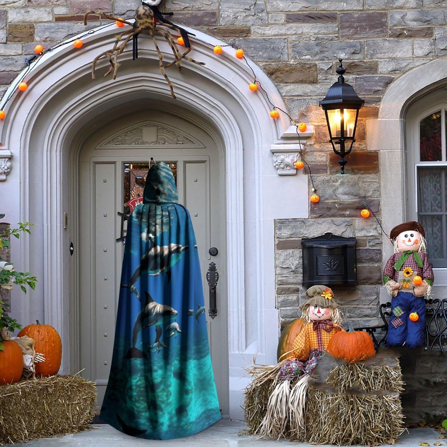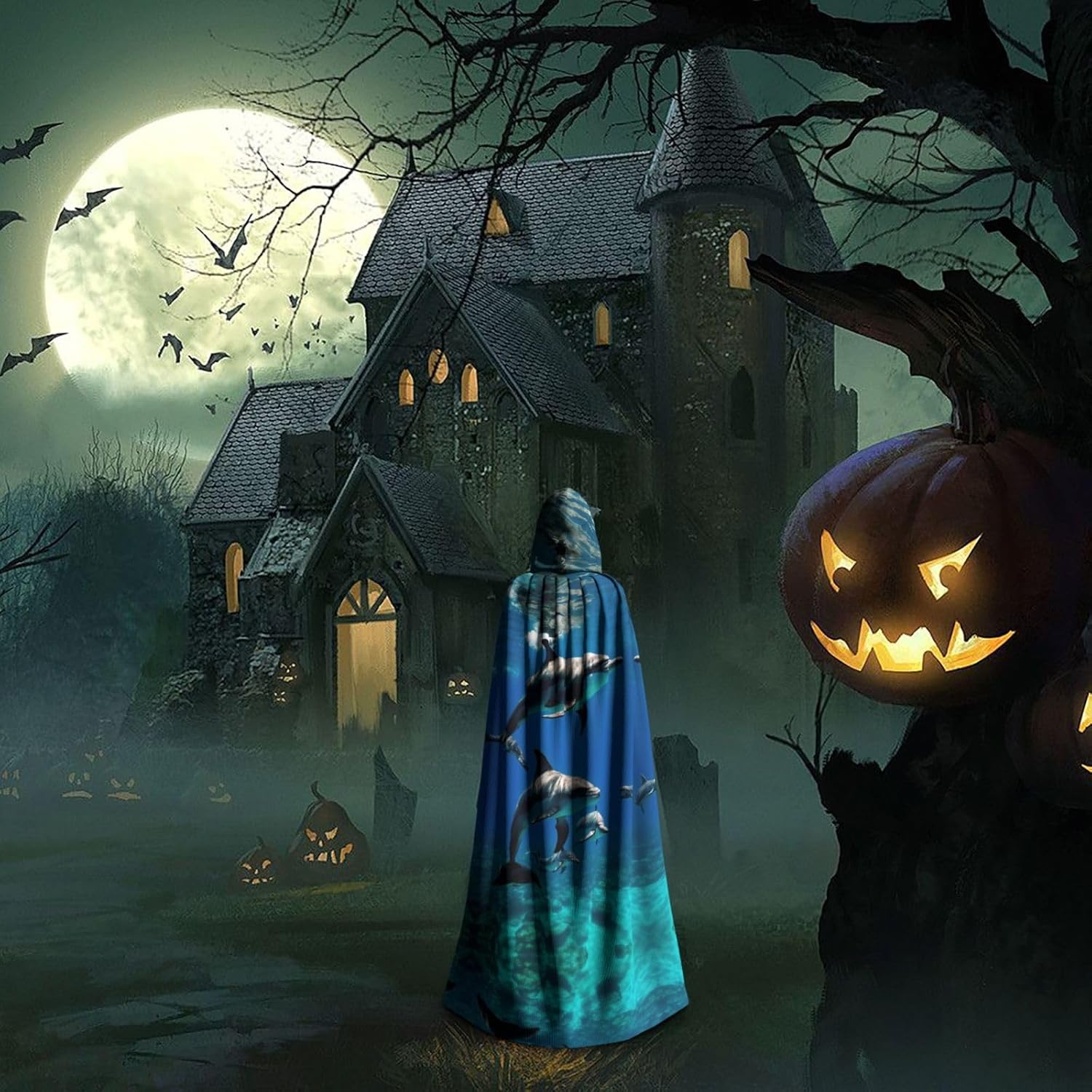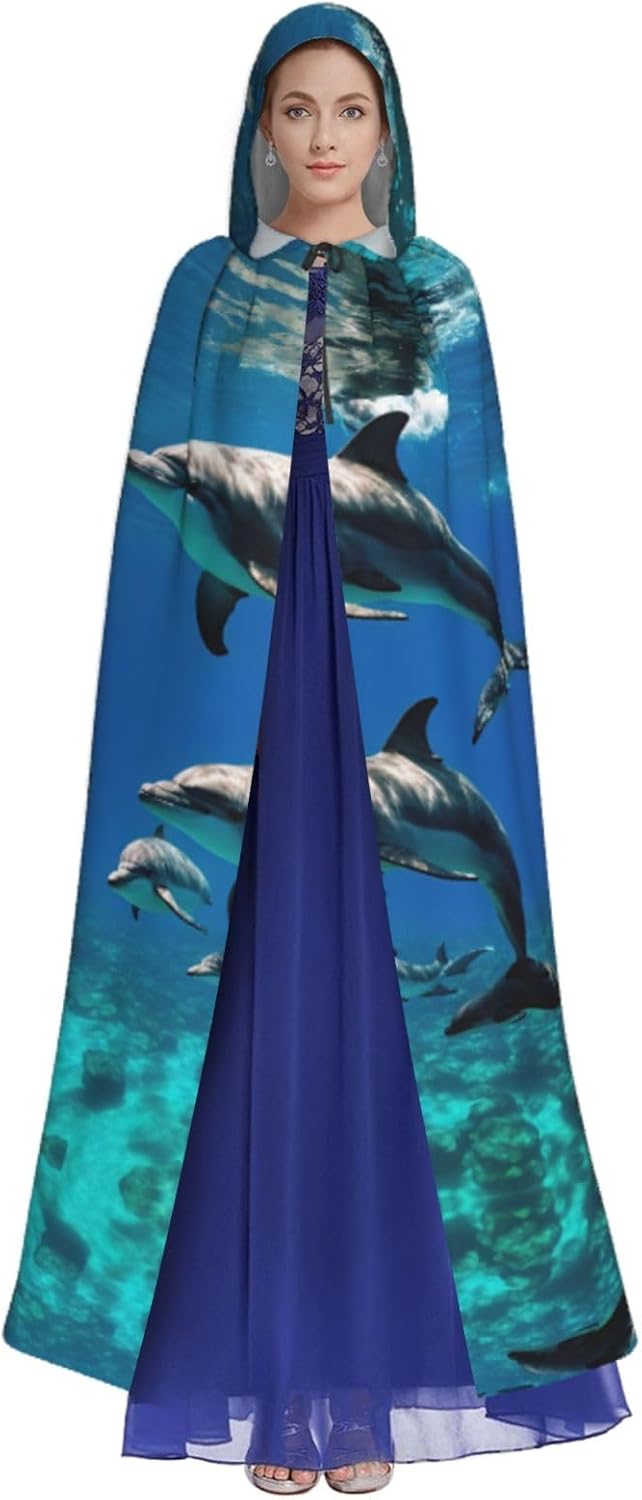 Divertente mantello con cappuccio a forma di delfino, unisex, per Halloween, Natale, vampiro, stregone, costume cosplay