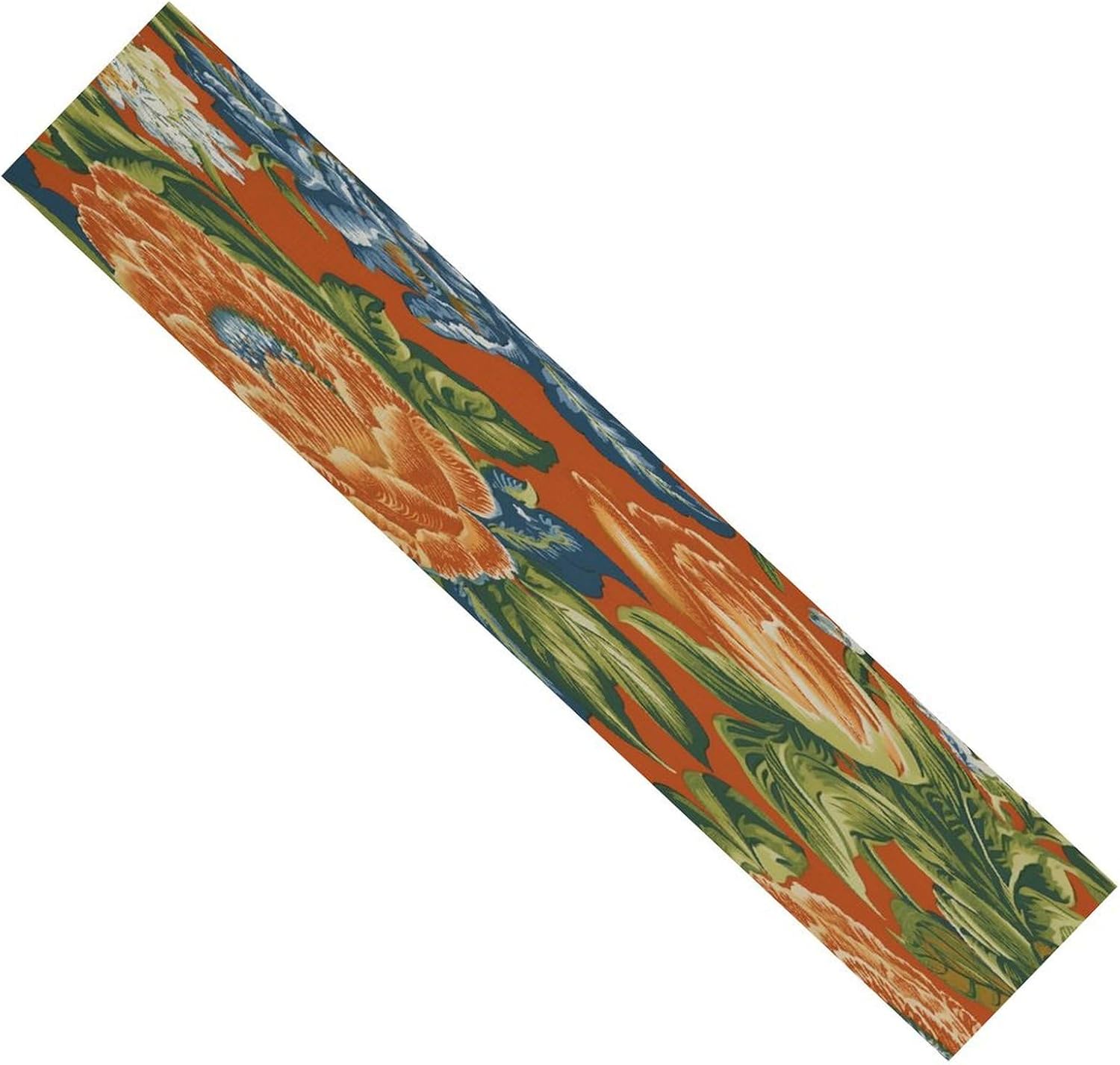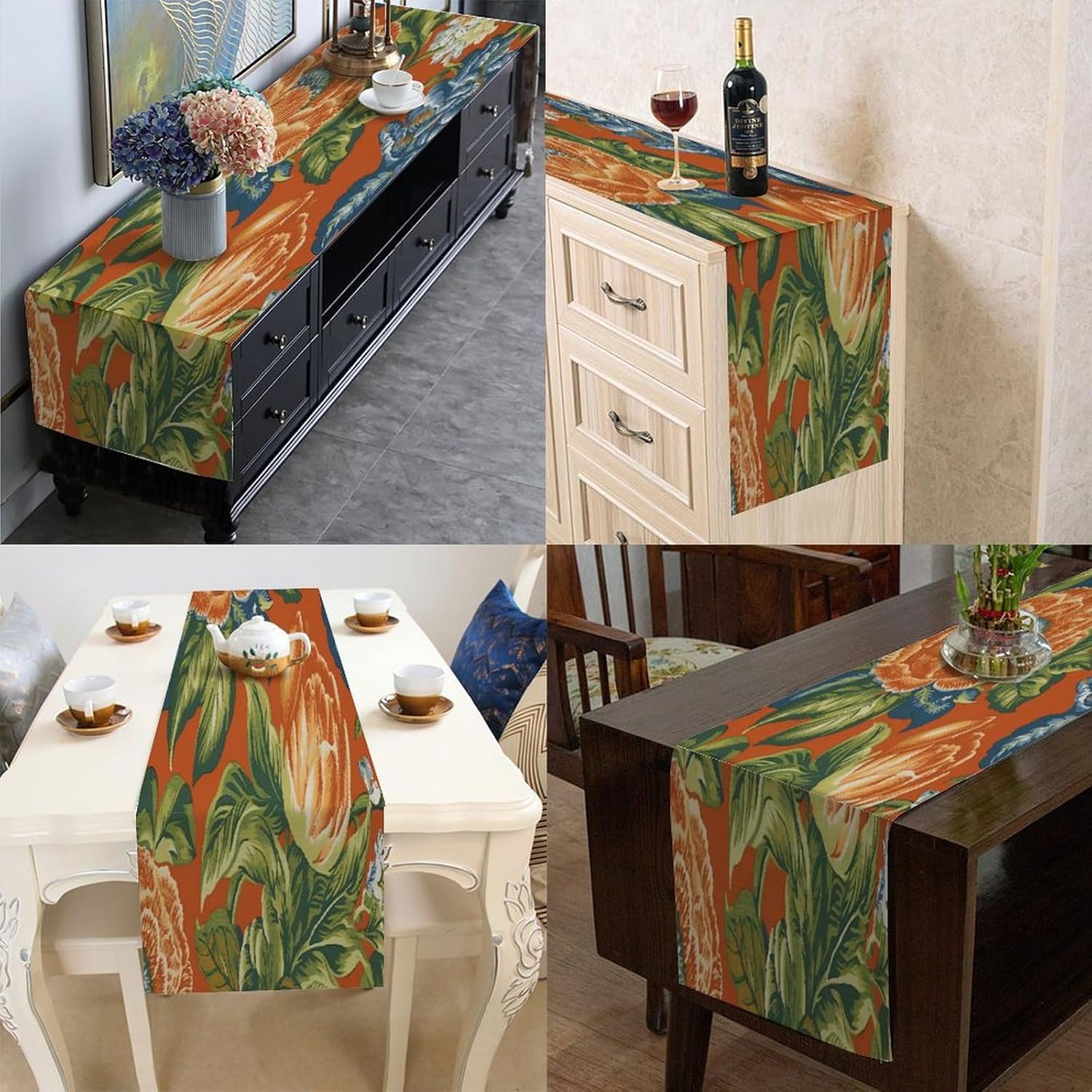 Divertente runner da cucina in cotone e lino con motivo floreale arancione, stile rustico, decorazione da tavolo per cucina, tavolo da pranzo, eventi speciali, decorazione per feste